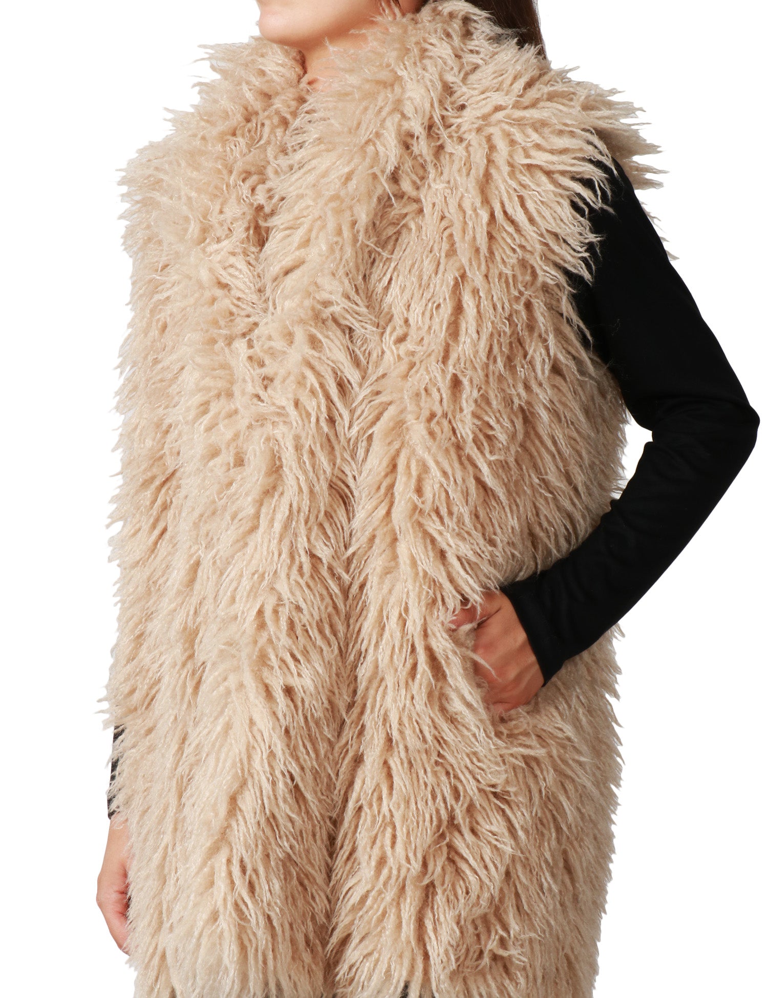 Gilet in ecopelliccia a pelo lungo beige TAVUS MILANO. Lunghezza media. Vestibilità over.Stile: