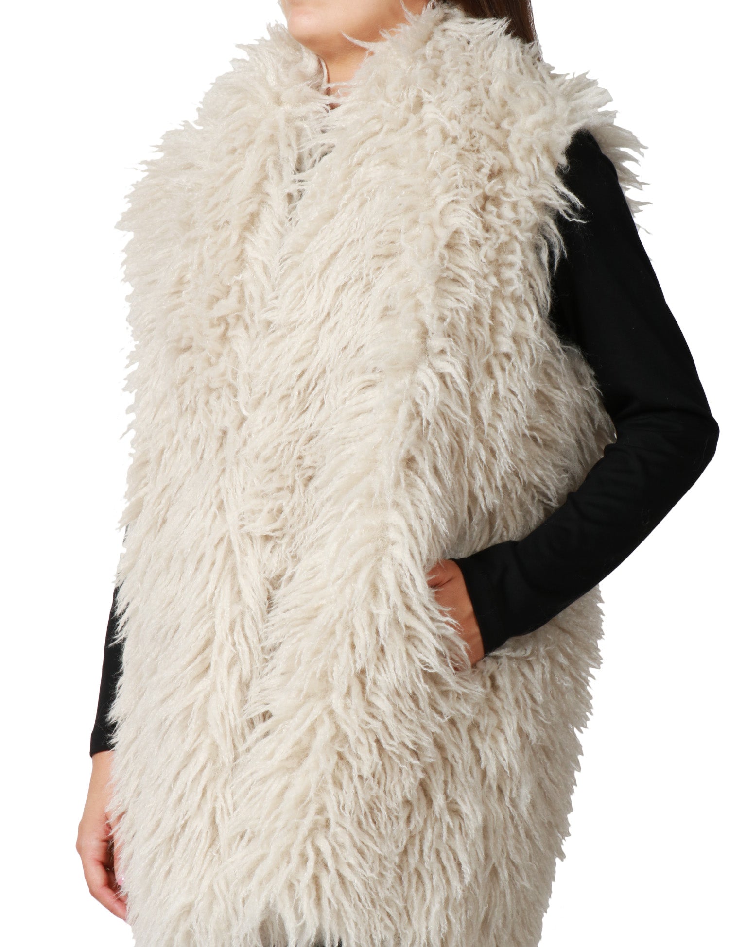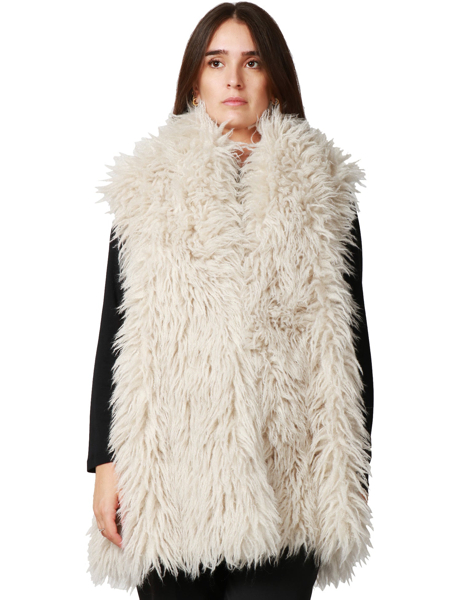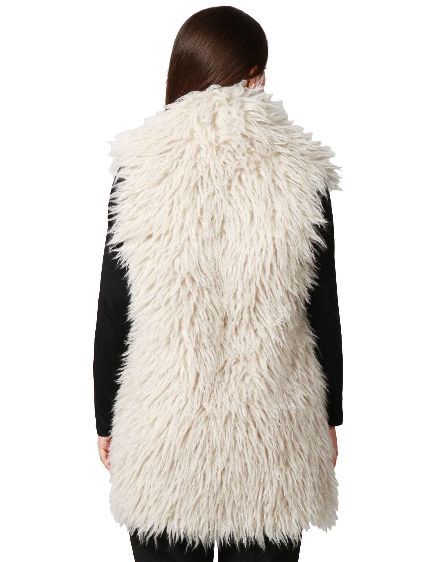 Gilet in ecopelliccia ghiacchio TAVUS MILANO a pelo lungo. Lunghezza media. Vestibilità over.Stile: