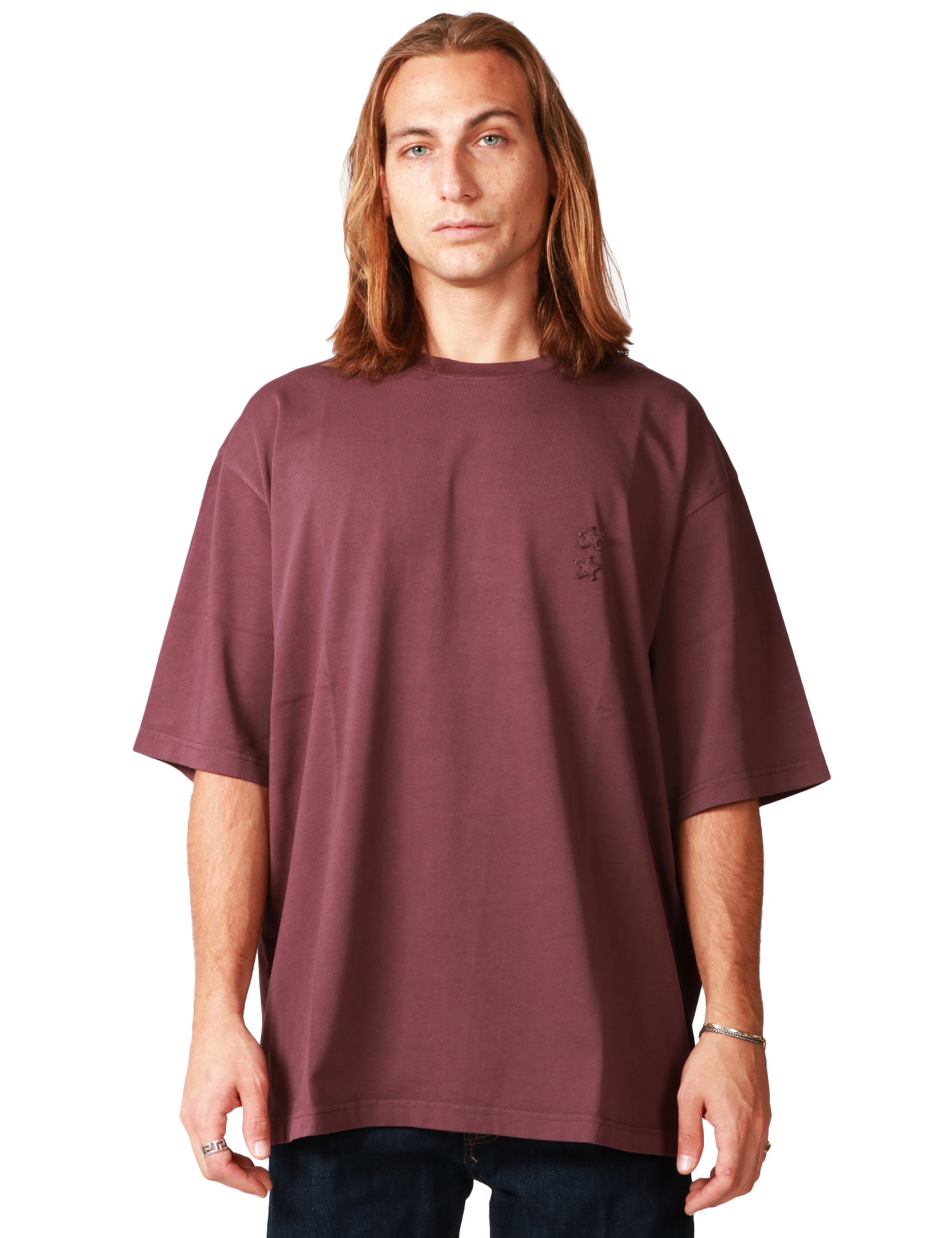 T-SHIRT UOMO ICON DENIM HAAK CILIEGIA OVER CON RICAMO STELLE SUL PETTO