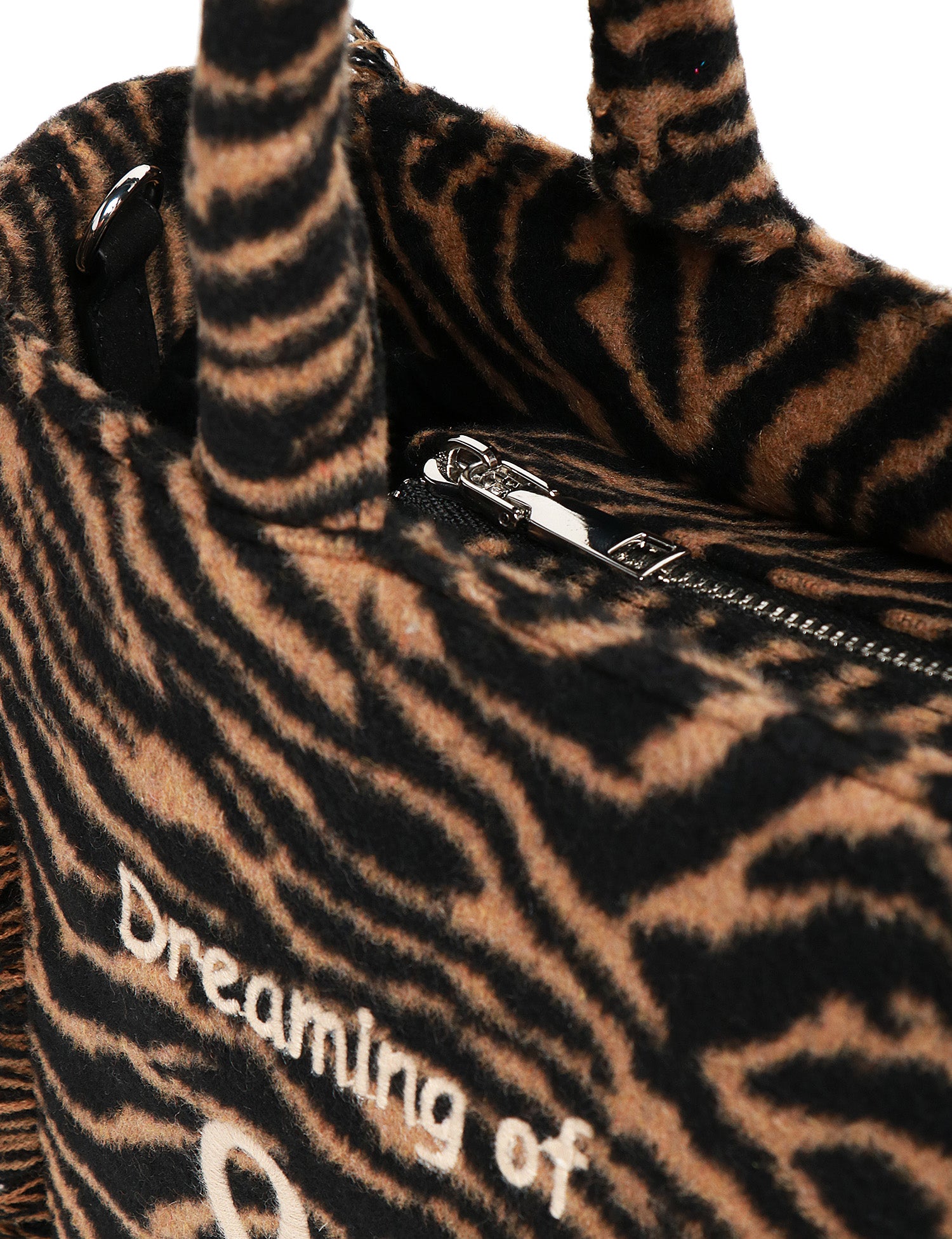 BORSA DONNA MC 2 SAINT BARTH COLETTE FELT BROWN ZEBRATA IN MISTO LANA CON LOGO RICAMATO