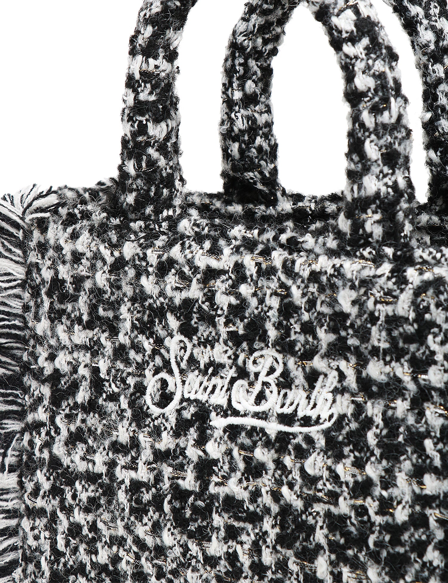 BORSA DONNA MC 2 SAINT BARTH VANITY MINI TWEED NERA CON LOGO RICAMATO E FRANGE