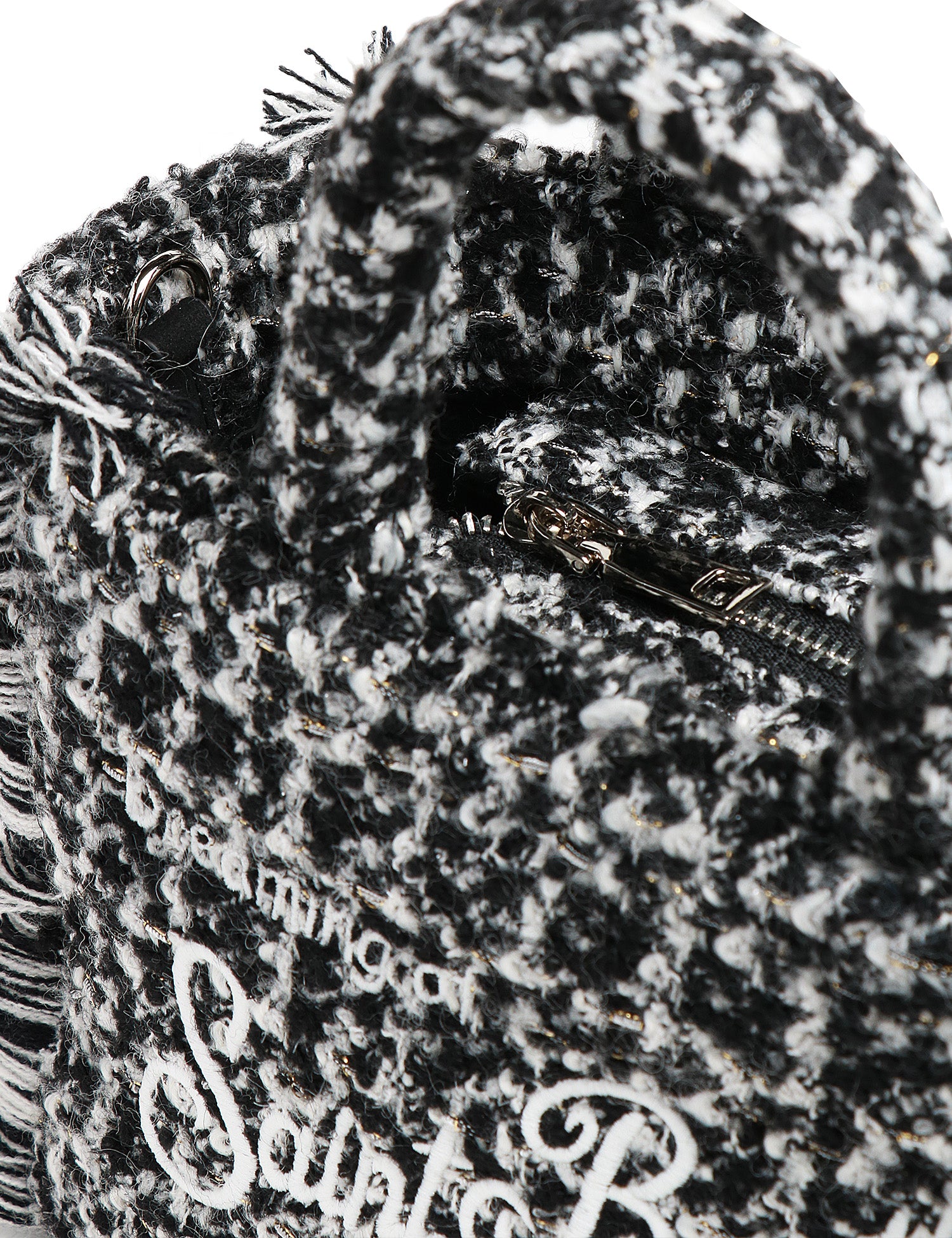 Logo ricamato, dettaglio frange