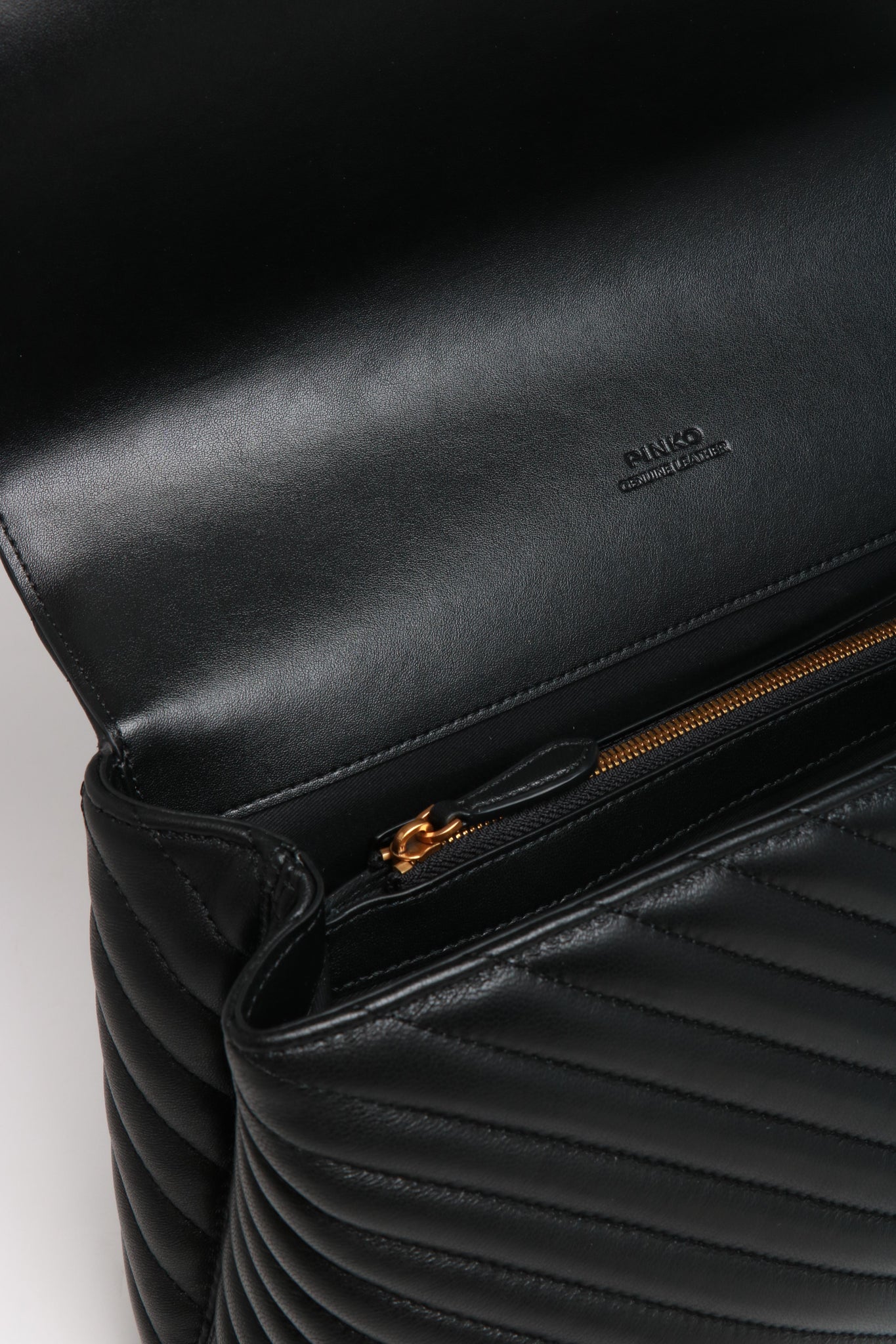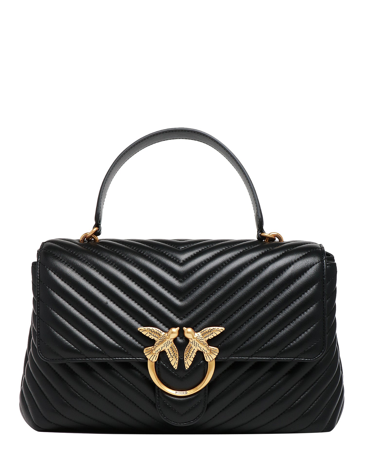 BORSA PINKO BIG LOVE PUFF LADY NERA IN NAPPA TRAPUNTATA CHEVRON, FIBBIA LOVE BIRDS ORO E MANICO IN PELLE