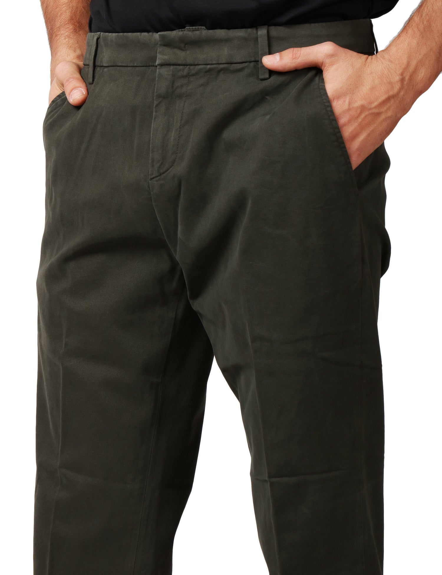PANTALONE UOMO DONDUP GAUBERT RELAX VERDONE A VITA BASSA IN GABARDINA STRETCH MANO CALDA