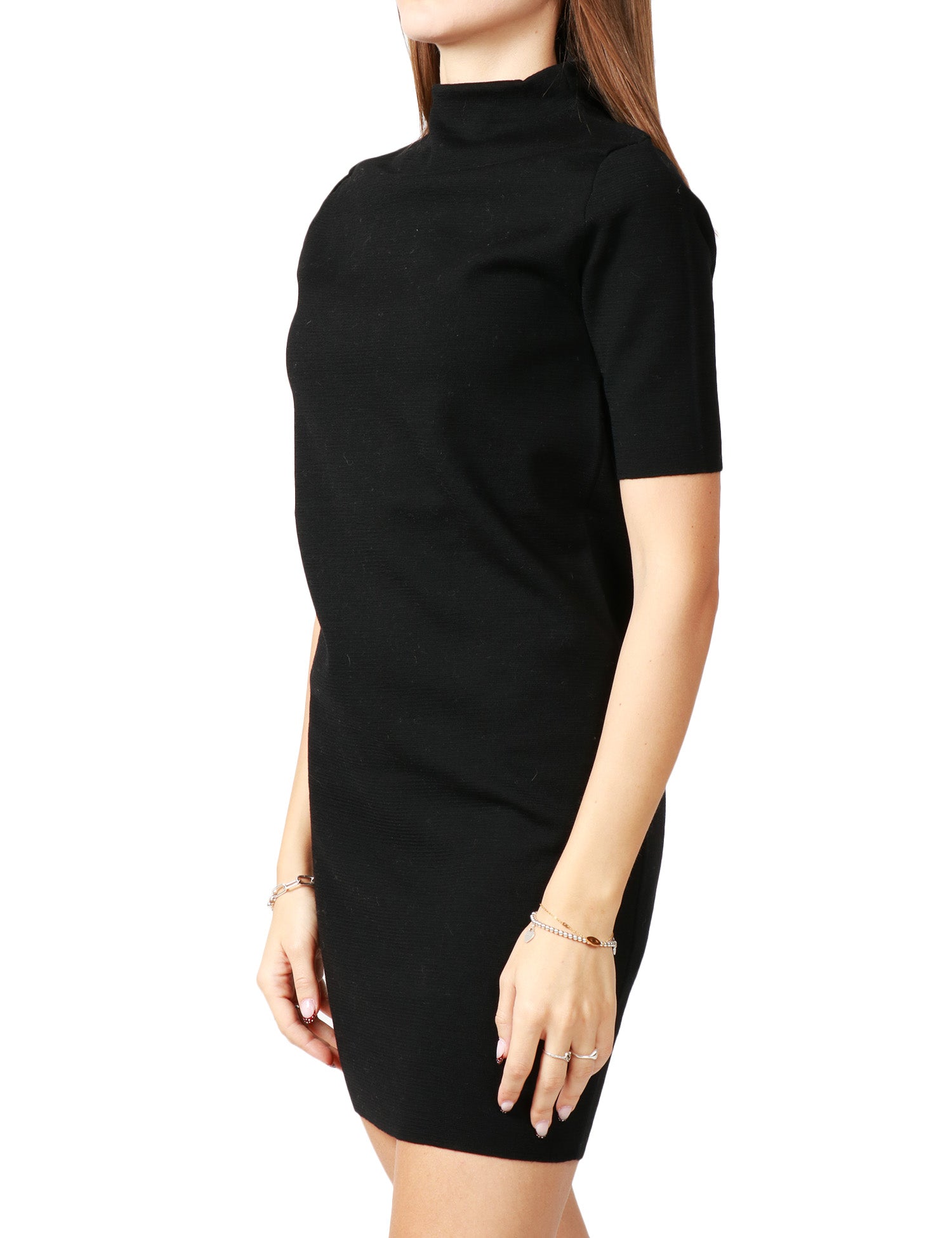 Abito corto ALPHA STUDIO nero in maglia stoffa a maniche corte, con collo ad imbuto. In lana merinos.Stile: