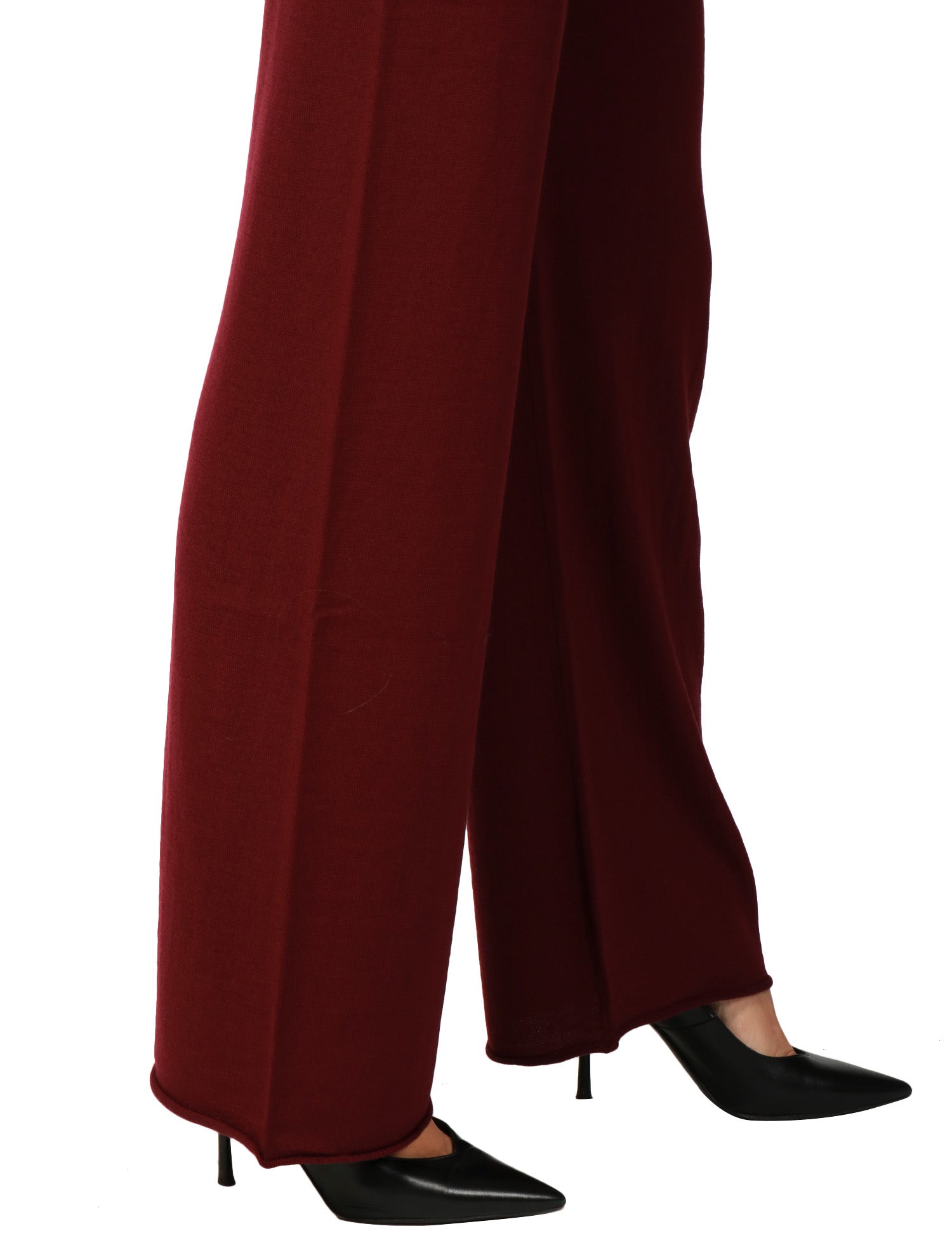 Pantalone donna ANNA MOLINARI color vino realizzato interamente in lana merinos. Presenta elastico in vita e gamba ampia.Stile: