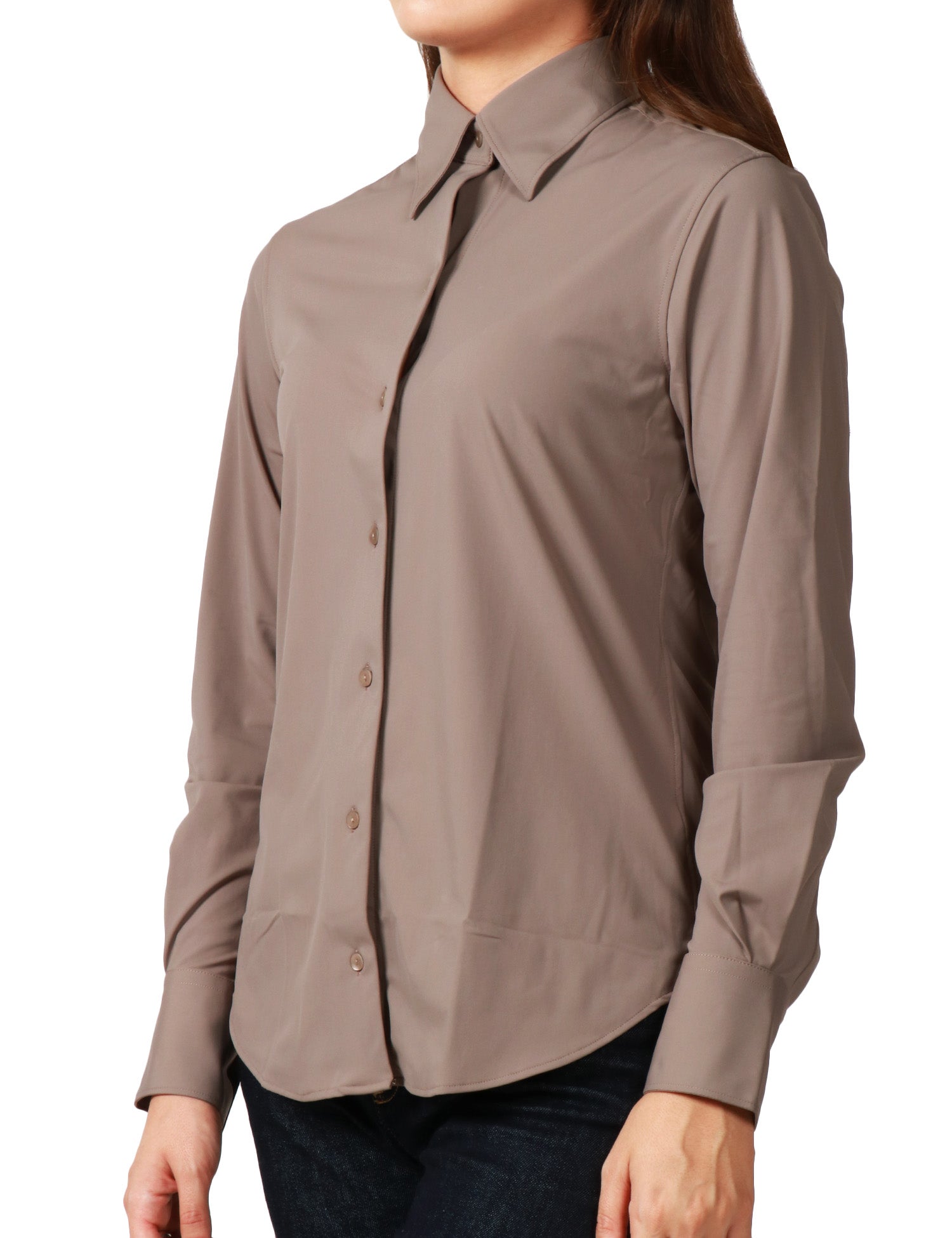 CAMICIA DONNA XACUS PERLA FANGO IN TESSUTO ACTIVE CON BOTTONI IN TONO