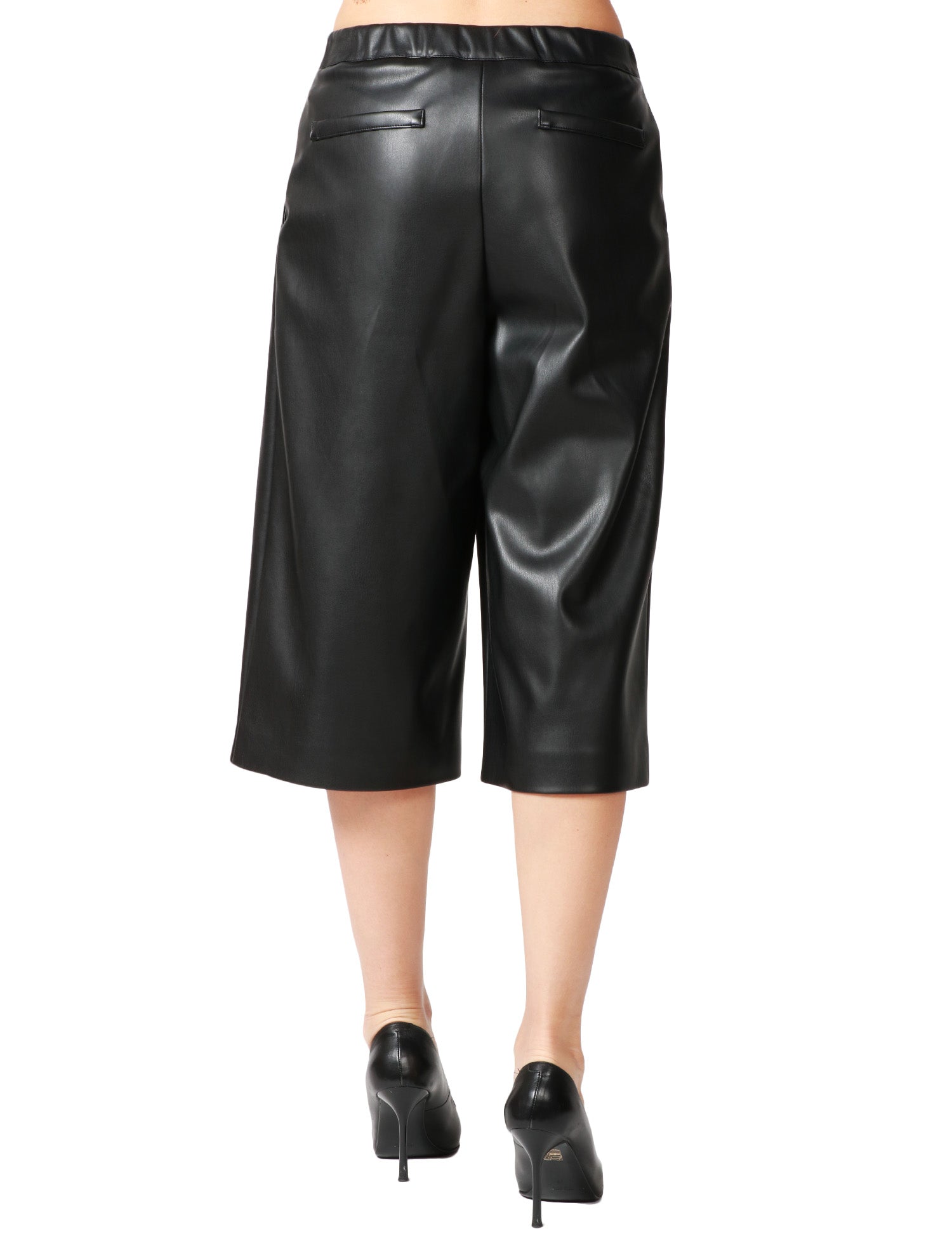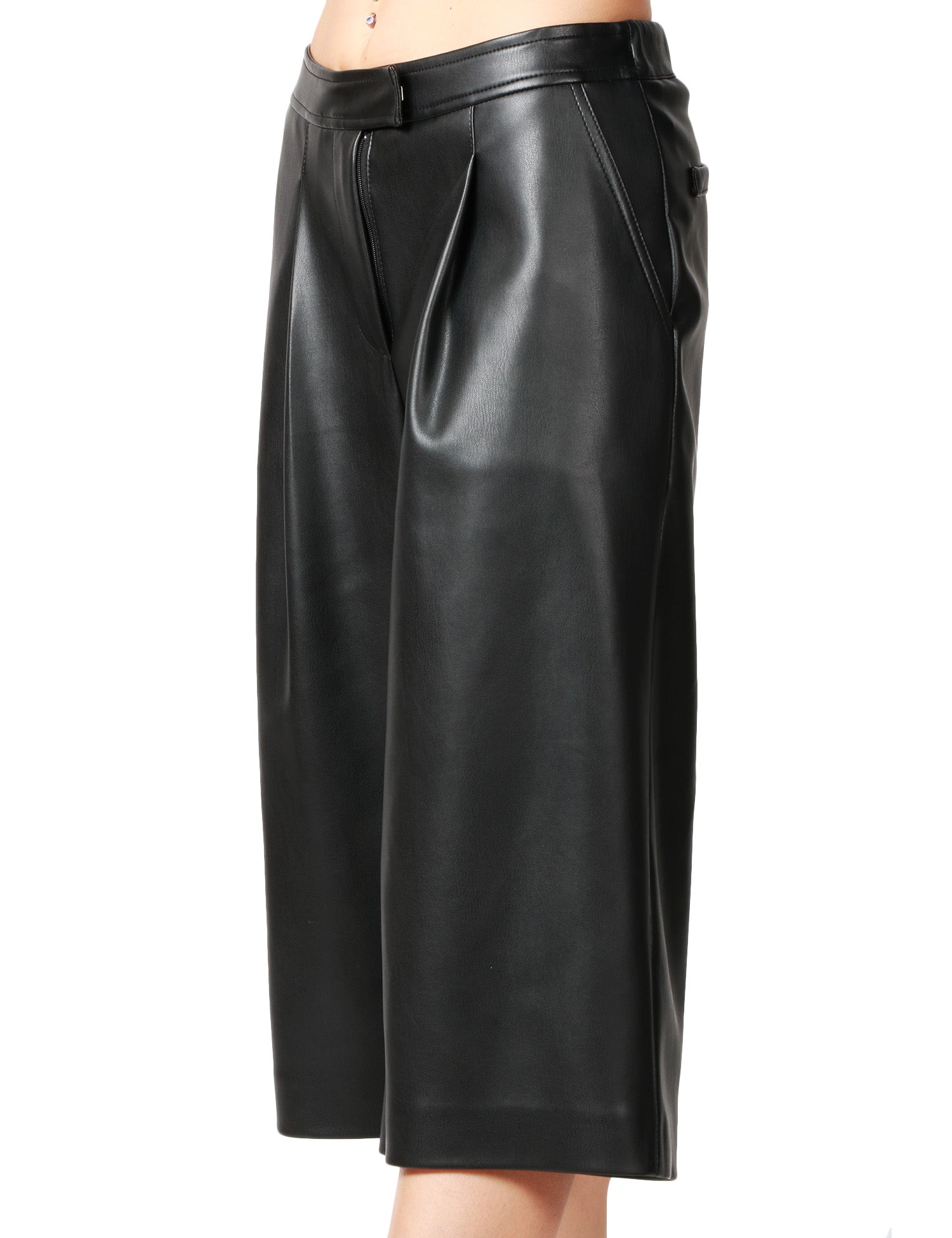 Bermuda ALPHA STUDIO nero in ecopelle a vita alta con pences davanti ed elastico arricciato sul retro.COMPOSIZIONE: 50% POLIESTERE 50% POLIURETANICA.