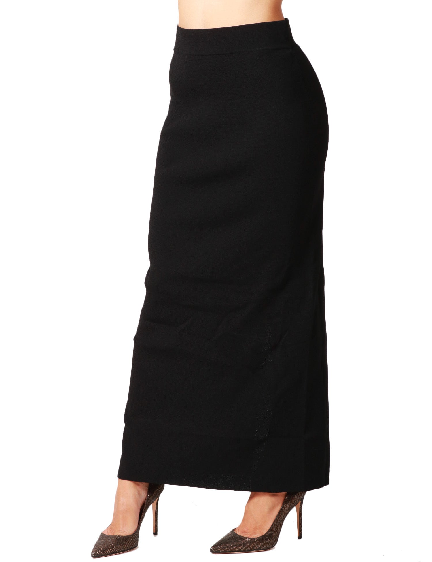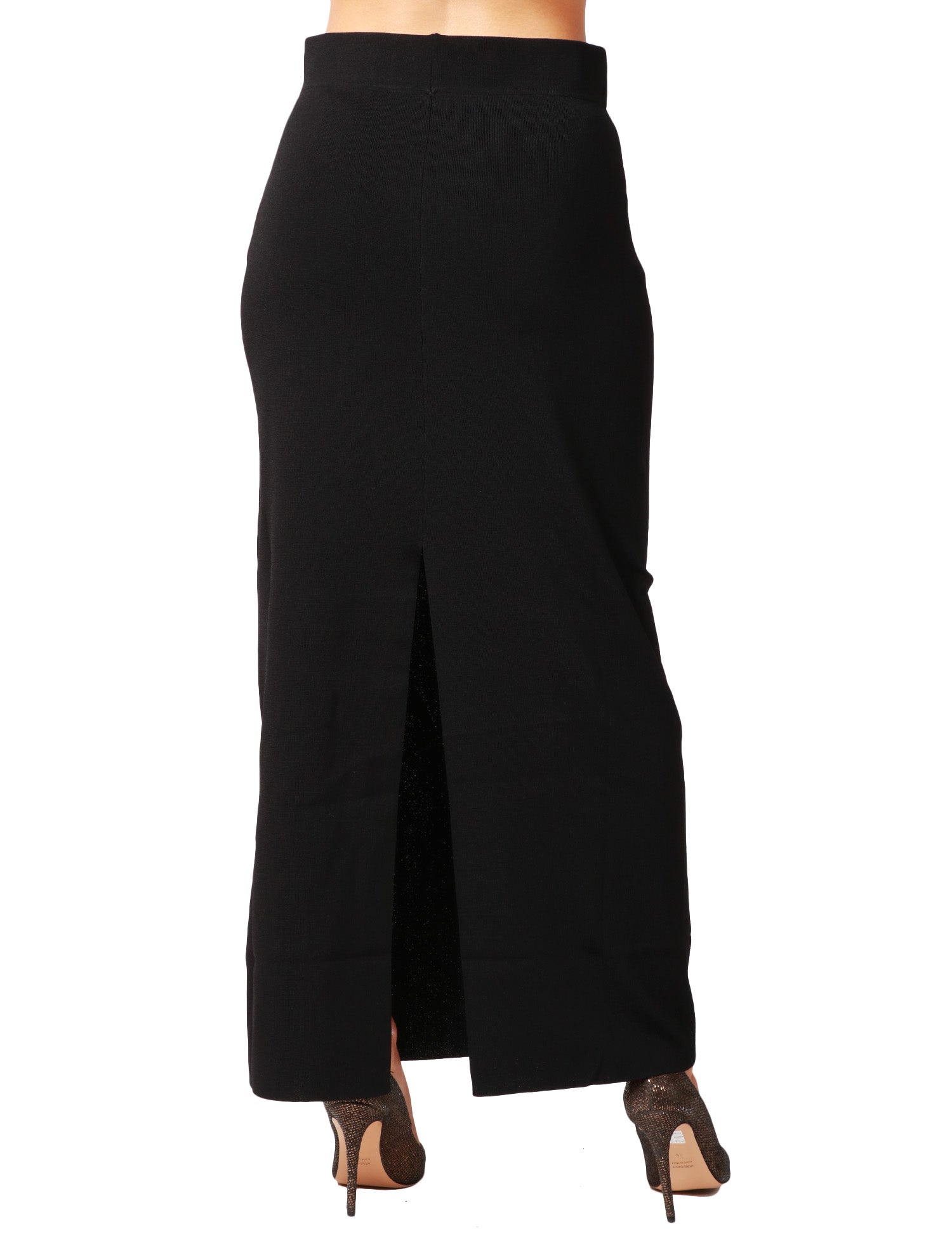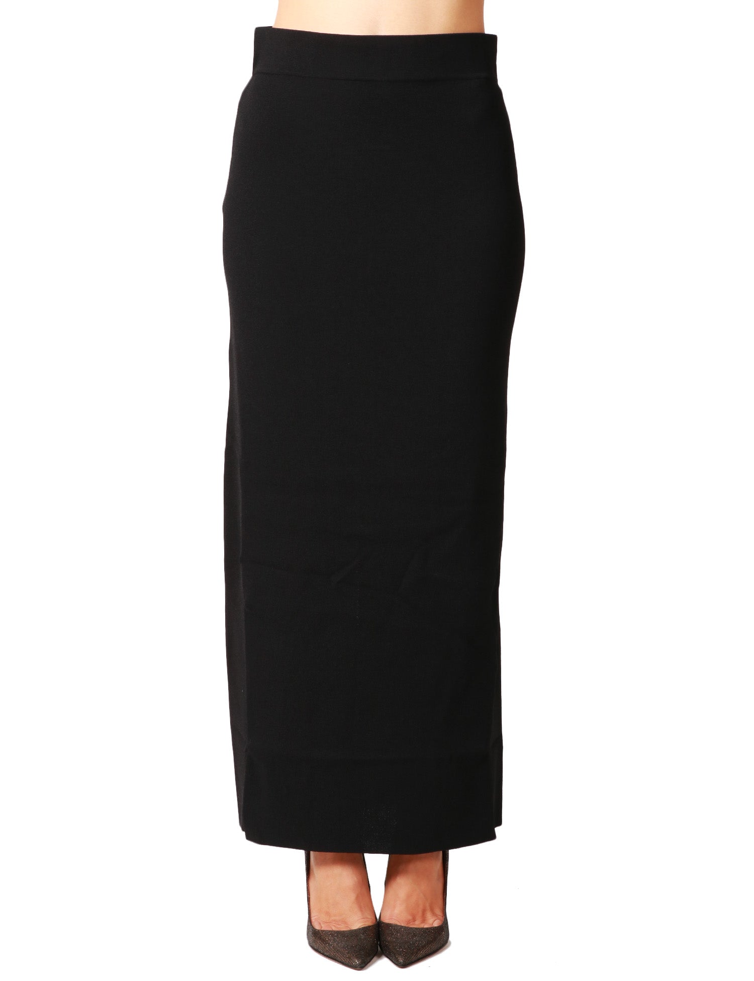 Gonna lunga ALPHA STUDIO nera a vita alta con fascia elastica. Spacco centrale sul retro. In lana.Stile: