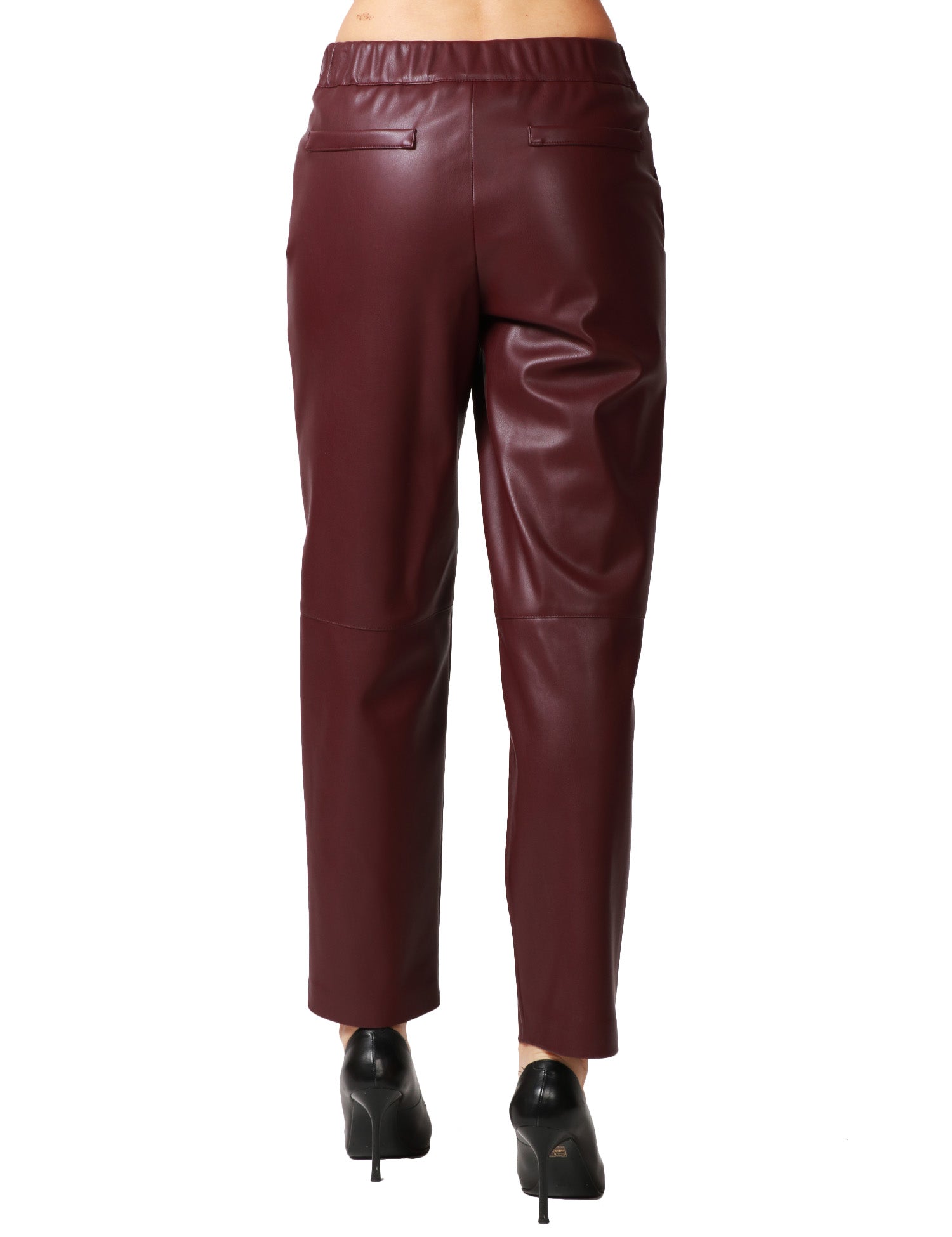 PANTALONE DONNA ALPHA STUDIO CILIEGIA IN ECOPELLE A GAMBA DRITTA CON ELASTICO ARRICCIATO DIETRO