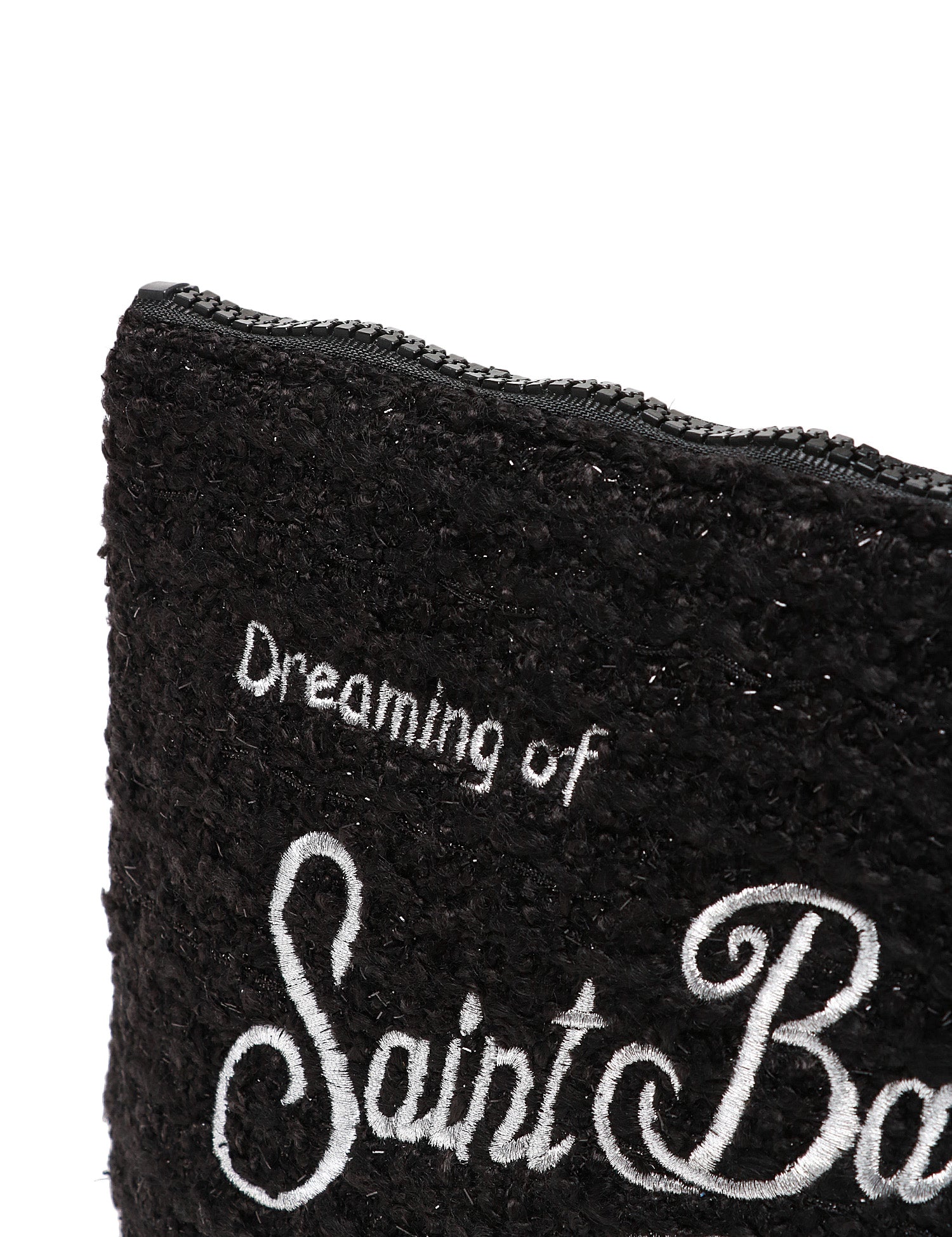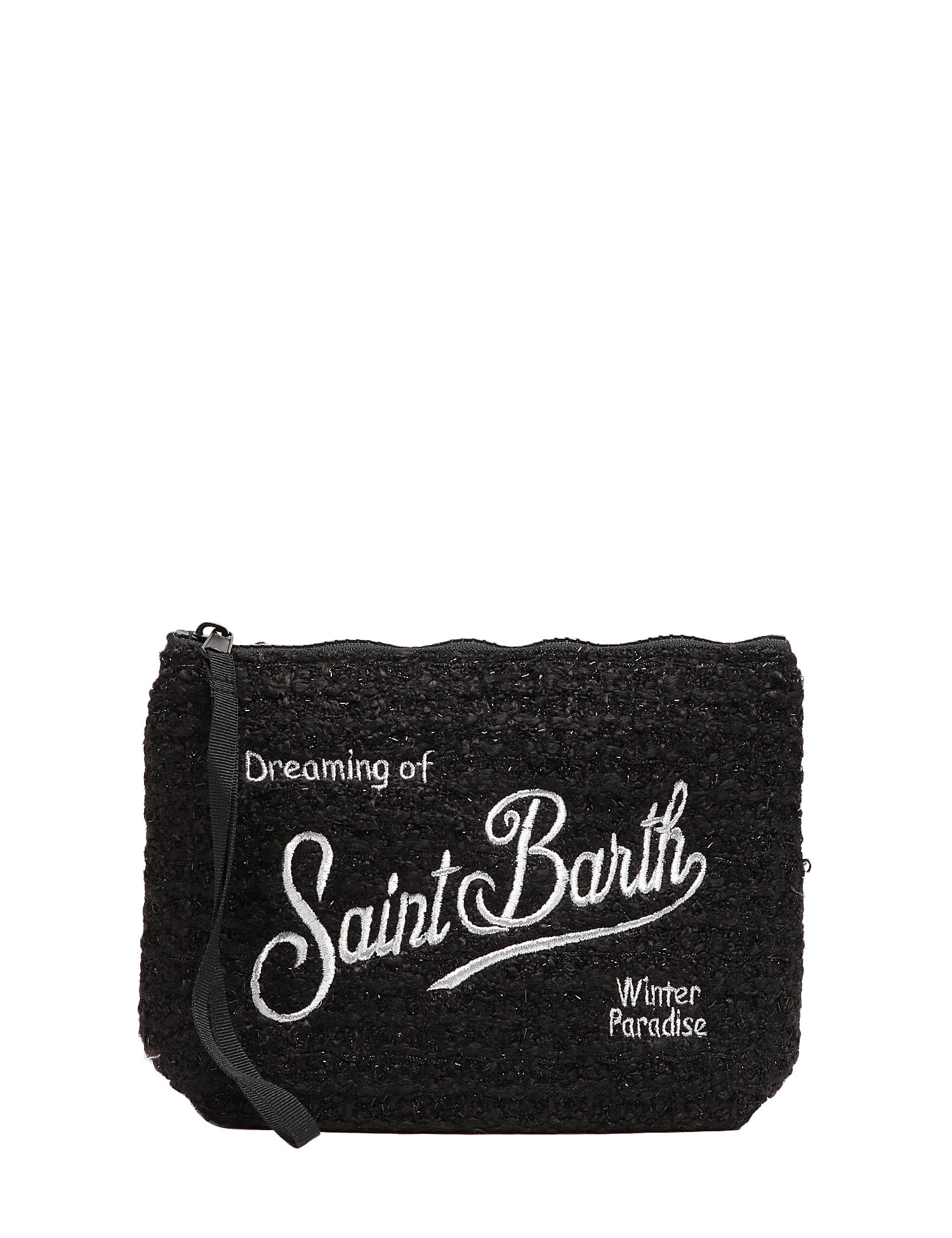 POCHETTE MC 2 SAINT BARTH ALINE NERA IN TWEED LUREX CON RICAMO LOGO