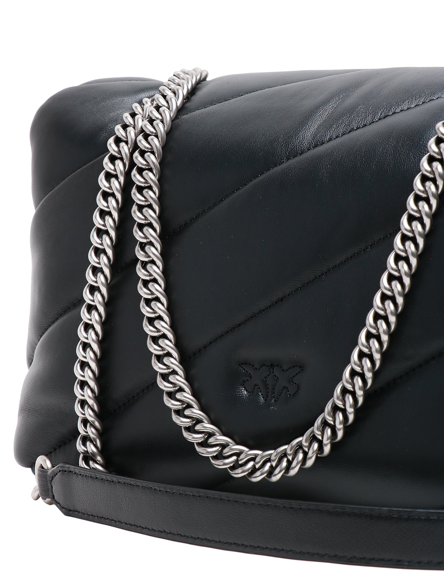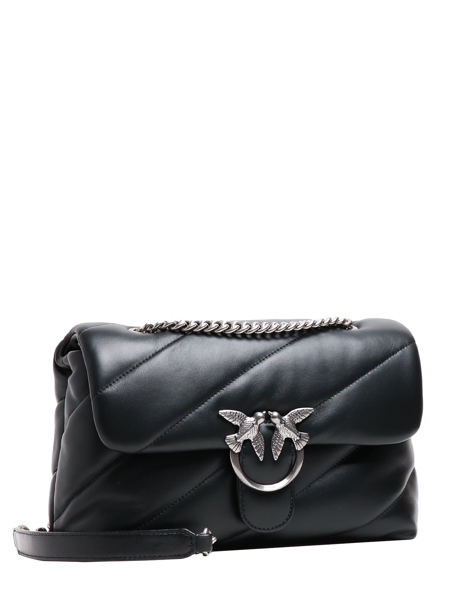 BORSA PINKO NERA CLASSIC LOVE BAG PUFF IN NAPPA TRAPUNTATA CON FIBBIA LOVE BIRDS E CATENA SILVER