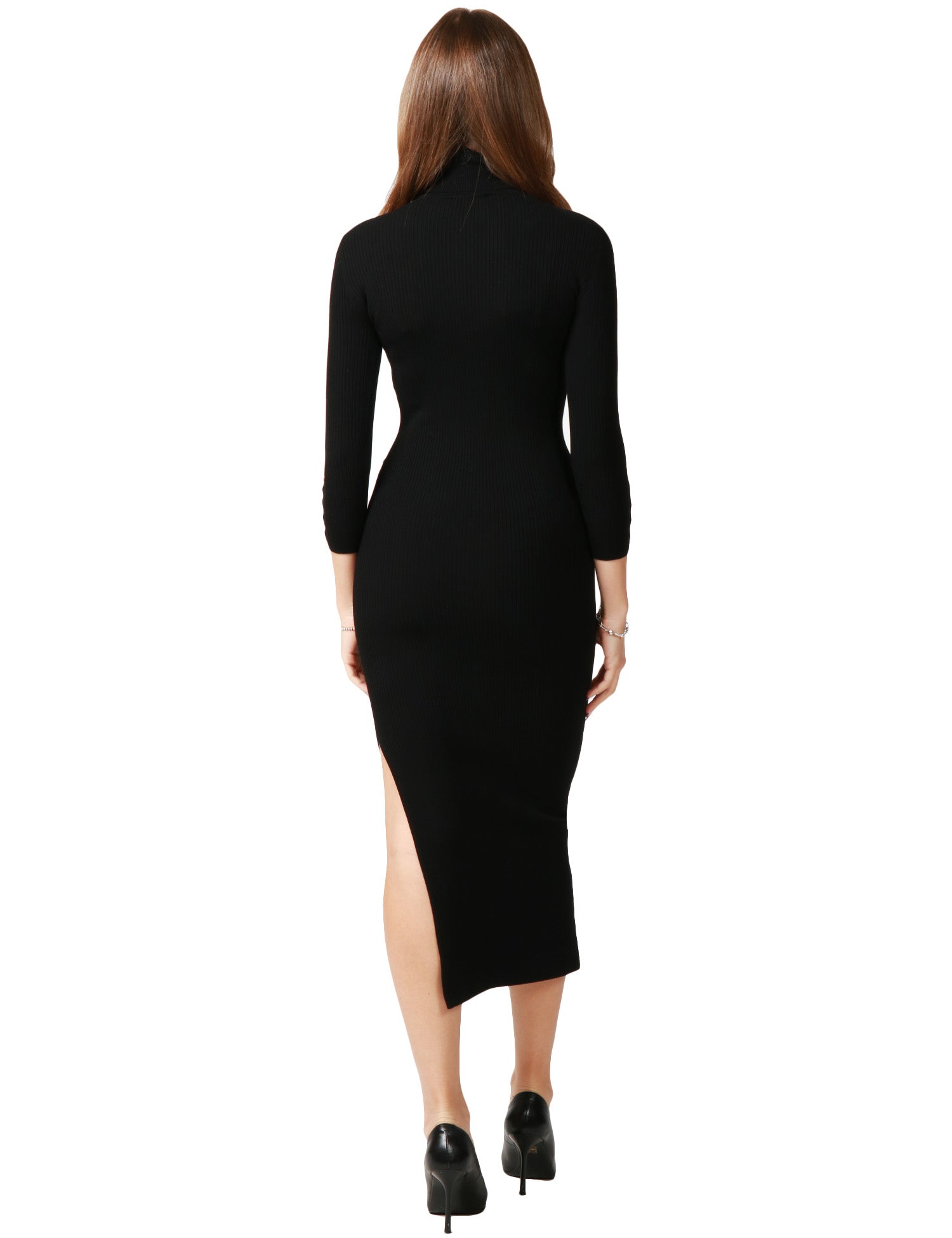 ABITO LONGUETTE ELISABETTA FRANCHI NERO IN MAGLIA CON COLLO DOLCEVITA E SPACCO LATERALE