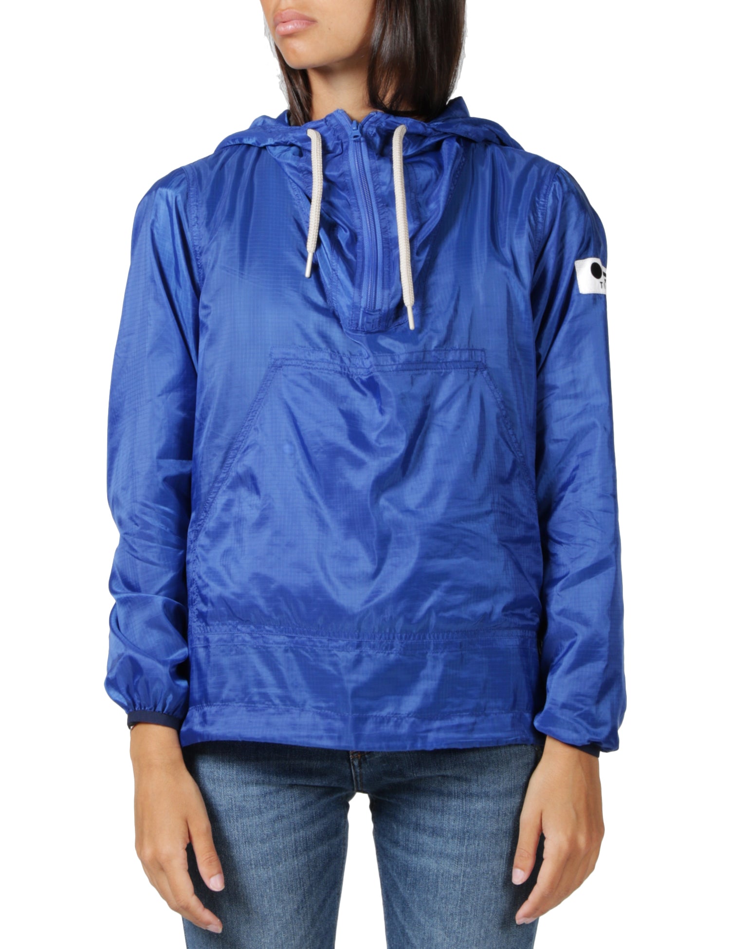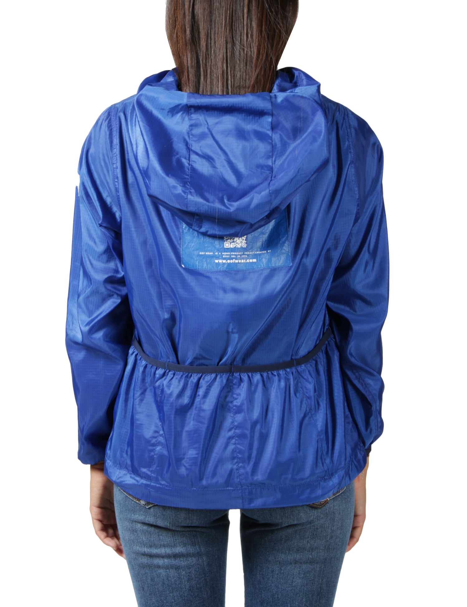 Felpa unisex in nylon. Ultra-leggero. Cappuccio fisso regolabile con cordoncino. Piccola apertura frontale con zip a vista. Coulisse elastica sull'orlo. Presenta una grande tasca a marsupio sul davanti con due piccole tasche nascoste. Quattro tasche dettagliate sul retro del capo con lycra elastica.Dettagli: