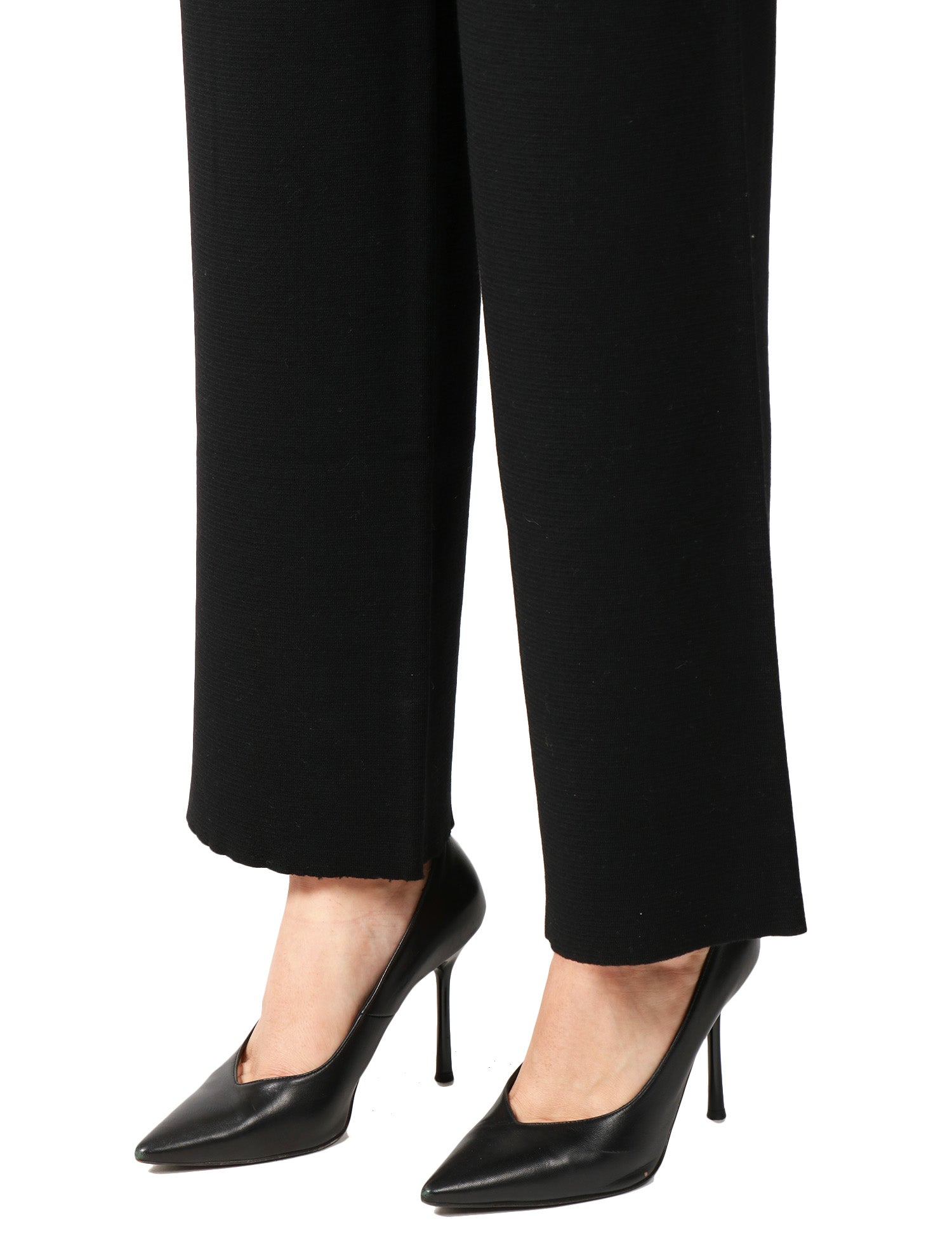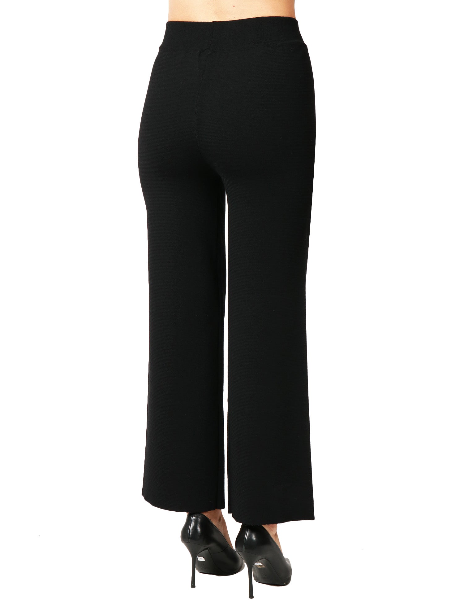 Pantalone ALPHA STUDIO nero in maglia stoffa a vita alta con fascia elastica. Cropped. In lana merinos.Stile: