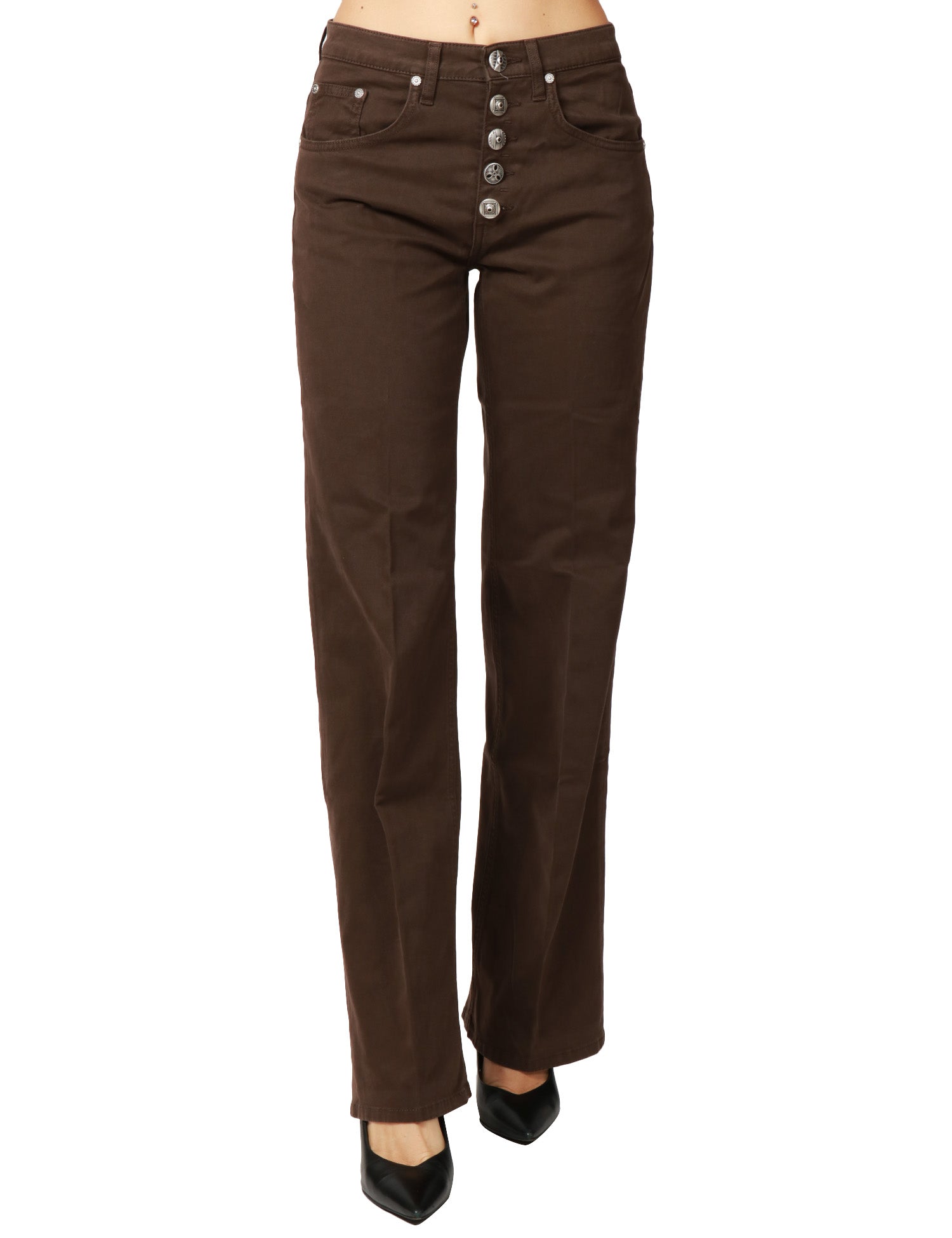 JEANS DONNA DONDUP JACKLYN MARRONE CON BOTTONIERA GIOIELLO E GAMBA A PALAZZO
