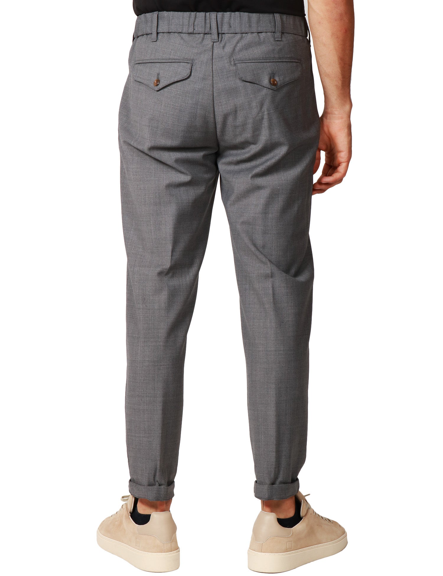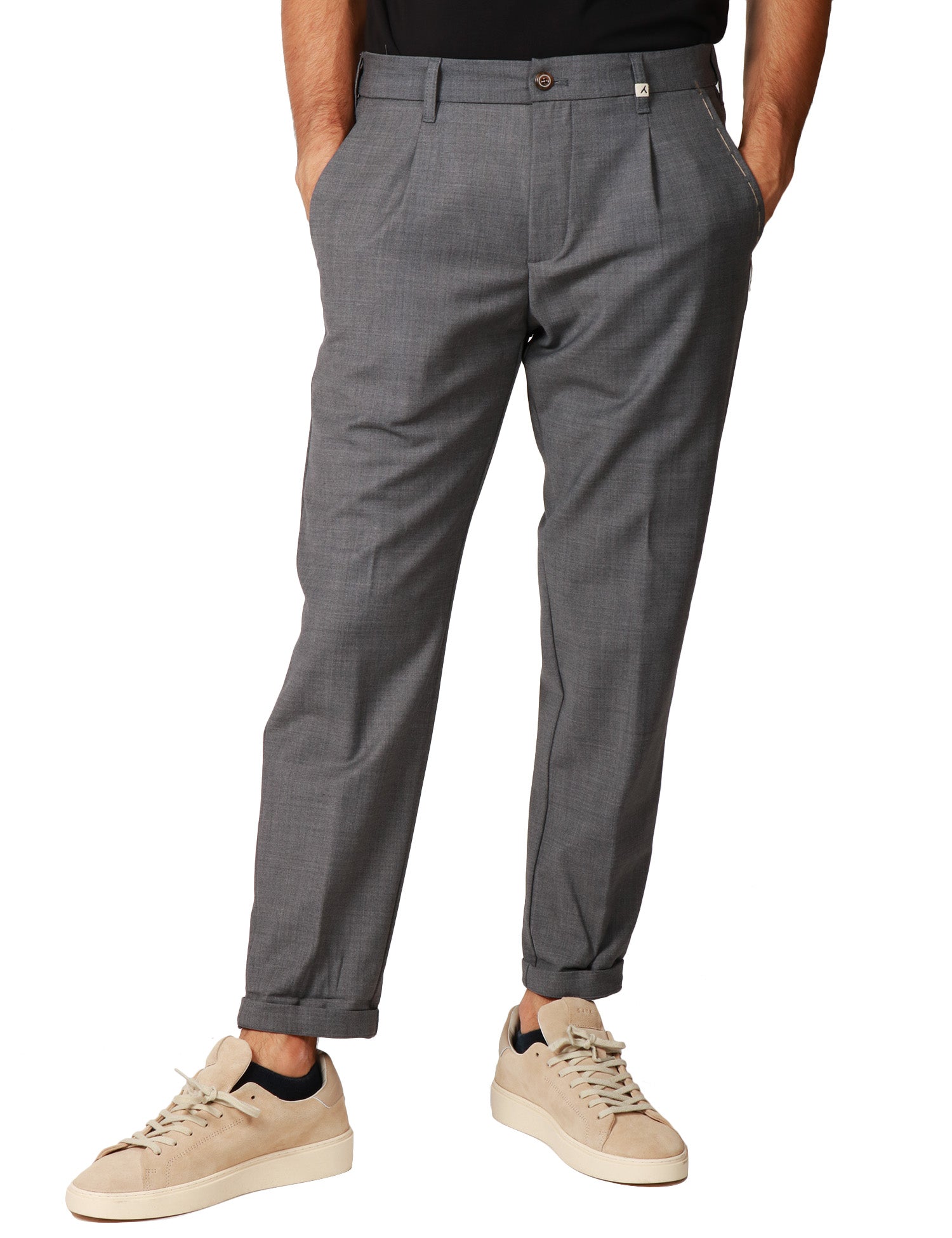 Pantalone uomo MYTHS grigio con pence singola davanti ed elastico sulla parte posteriore della vita. Tasche laterali a filo. Tasche posteriori con patta e bottone. Carrot fit.Stile: