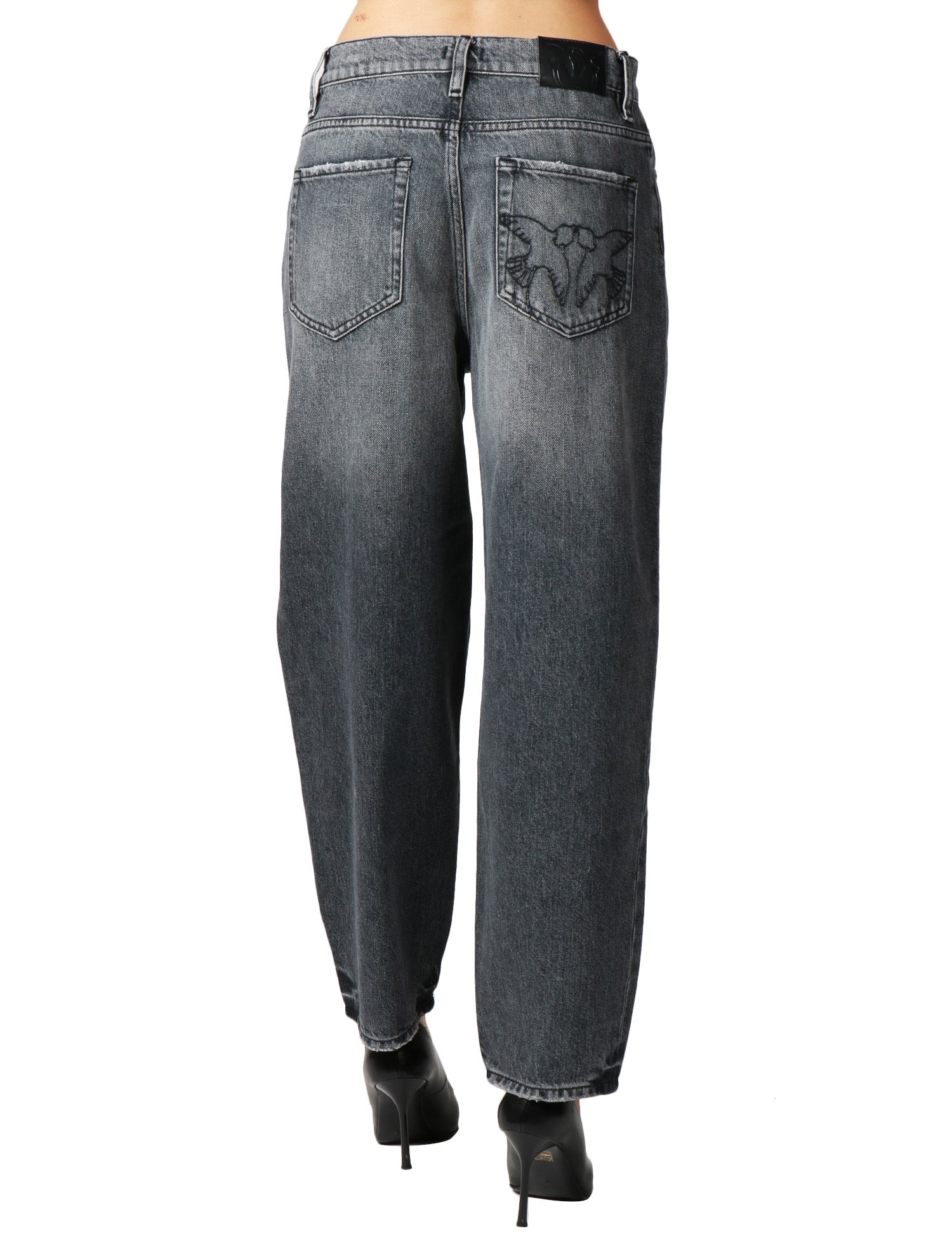 JEANS DONNA PINKO ESTELLE DARK GREY BALLON FIT CON RICAMO LOVE BIRDS SULLA TASCA POSTERIORE