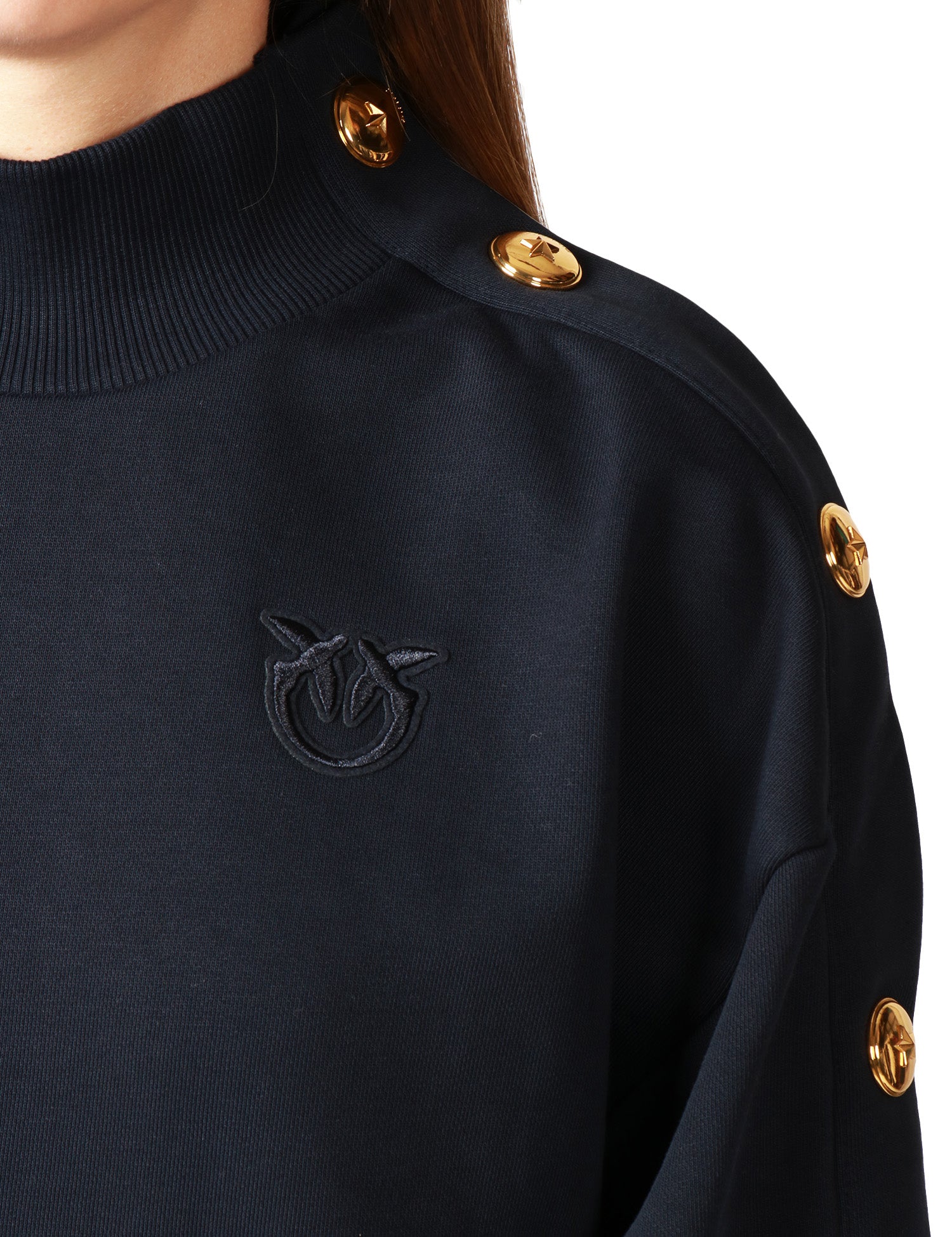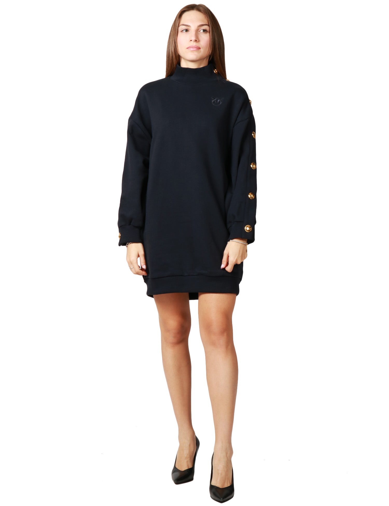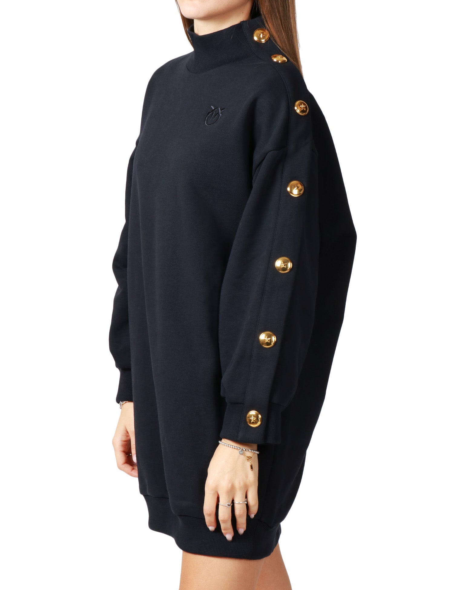 Maxi maglia PINKO Muesli a maniche lunghe, da indossare anche come abito corto, realizzata in felpa di puro cotone. Il capo risulta particolarmente comodo, grazie alla vestibilità morbida in cui è proposto e a dettagli confortevoli come il collo alto, i polsi e il fondo lavorati a costine. Patch con logo Love Birds ricamato sul davanti lato cuore, e dai bottoni in metallo decorati da stella che profilano le maniche e l'apertura laterale del collo.Stile: