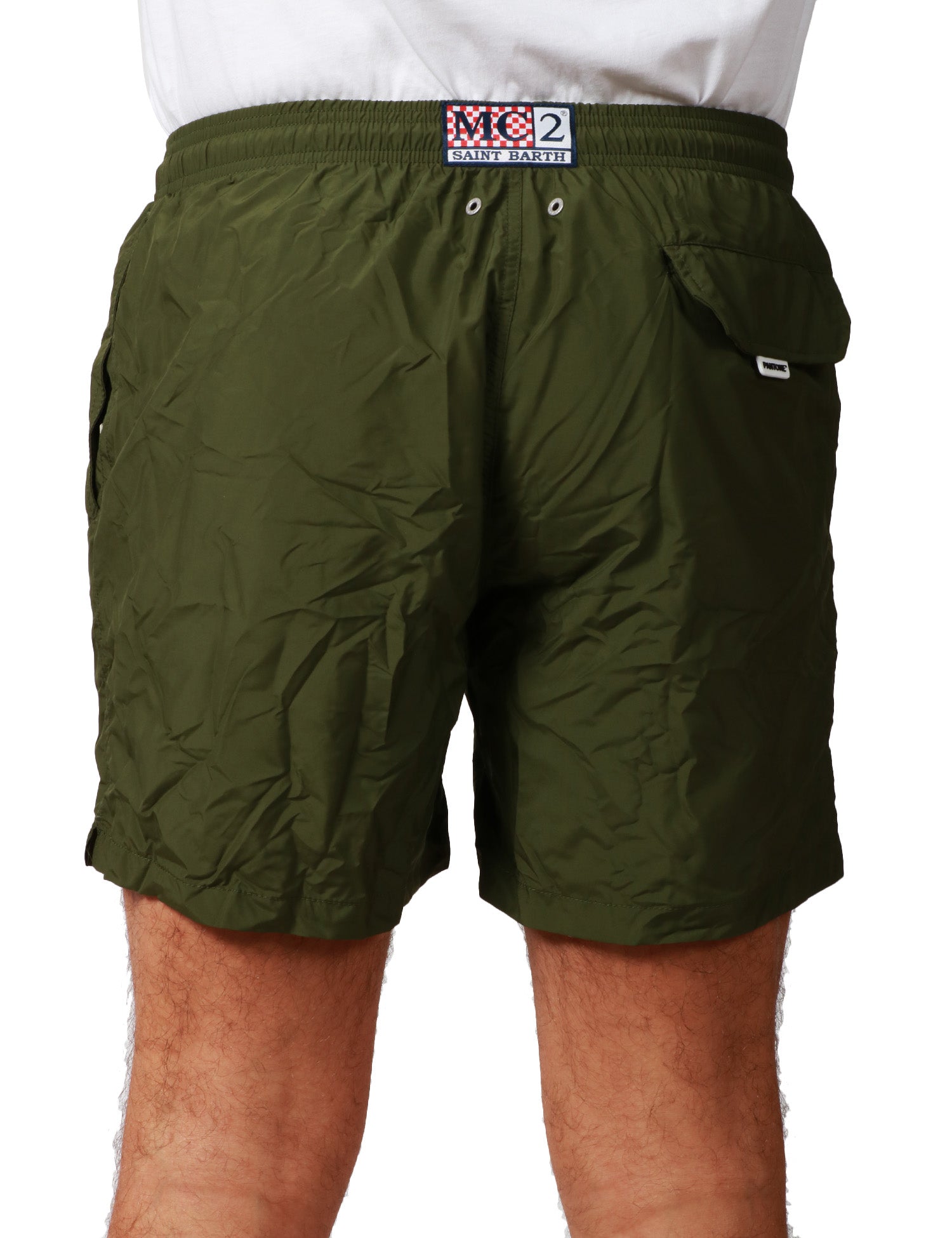 COSTUME MARE UOMO MC 2 SAINT BARTH PANTONE VERDE MILITARE IN TESSUTO LEGGERO CON CORDINO BIANCO