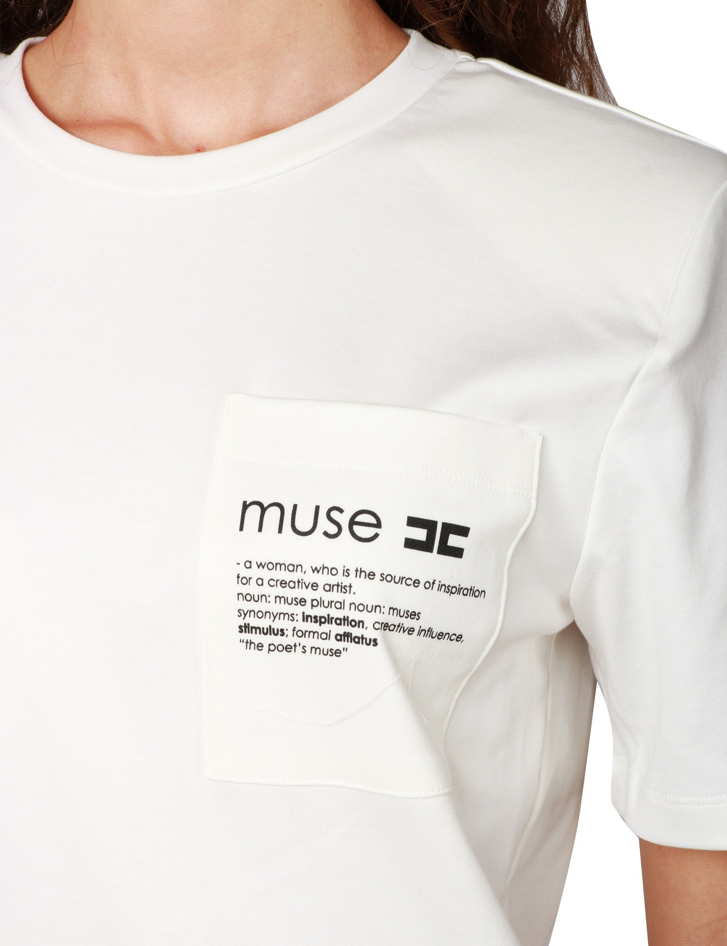 T-SHIRT DONNA ELISABETTA FRANCHI GESSO IN JERSEY DI COTONE PESANTE CON DETTAGLIO LETTERING SUL TASCHINO E DIETRO