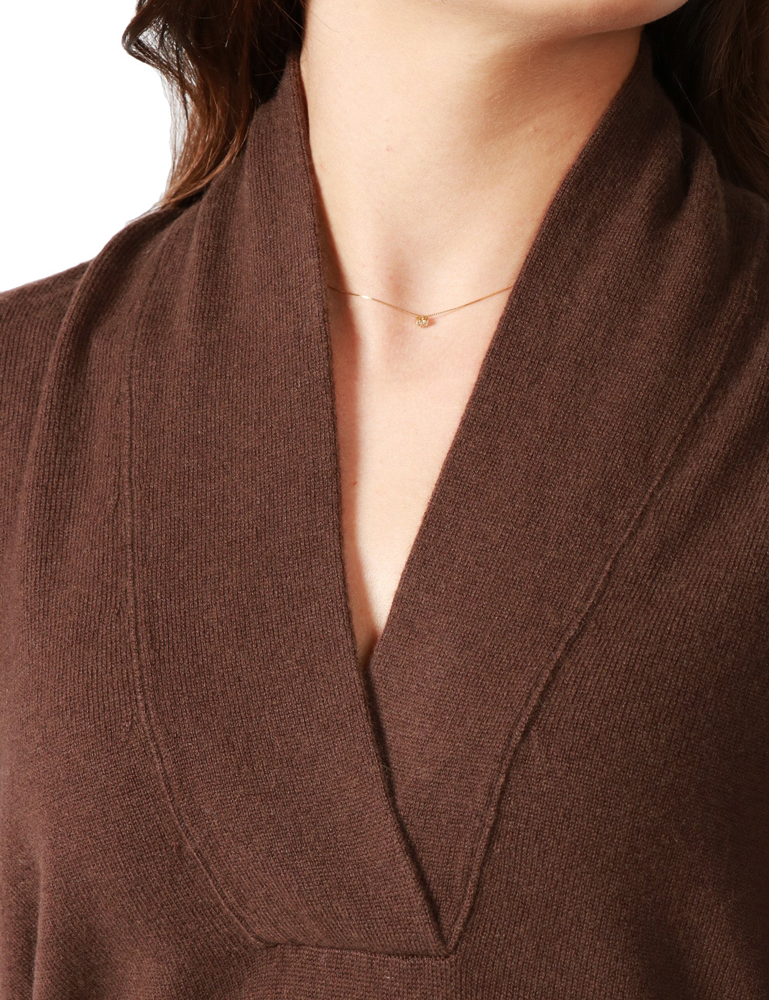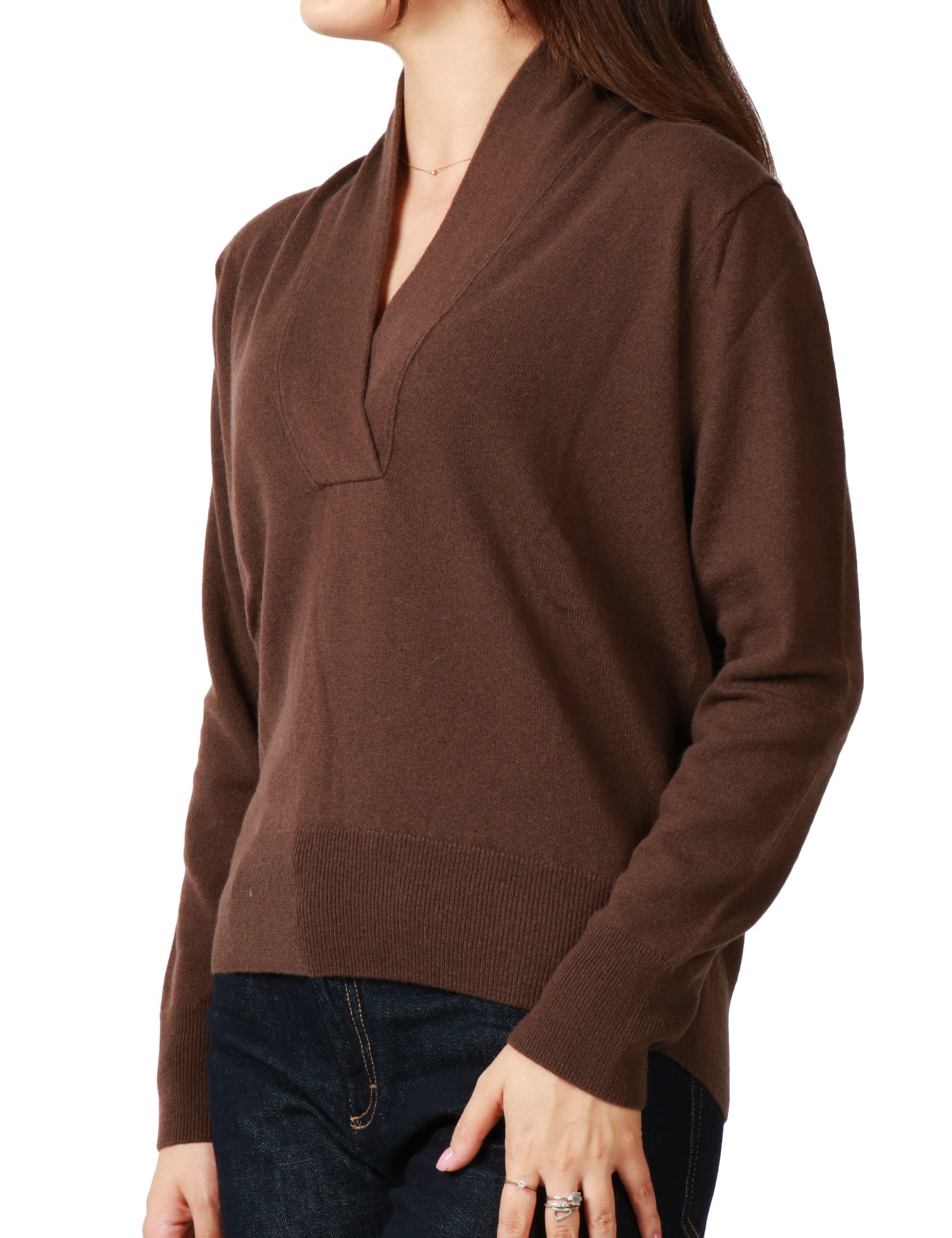 Maglia lupetto in rasata lana cashmere. Scollo a VStile: