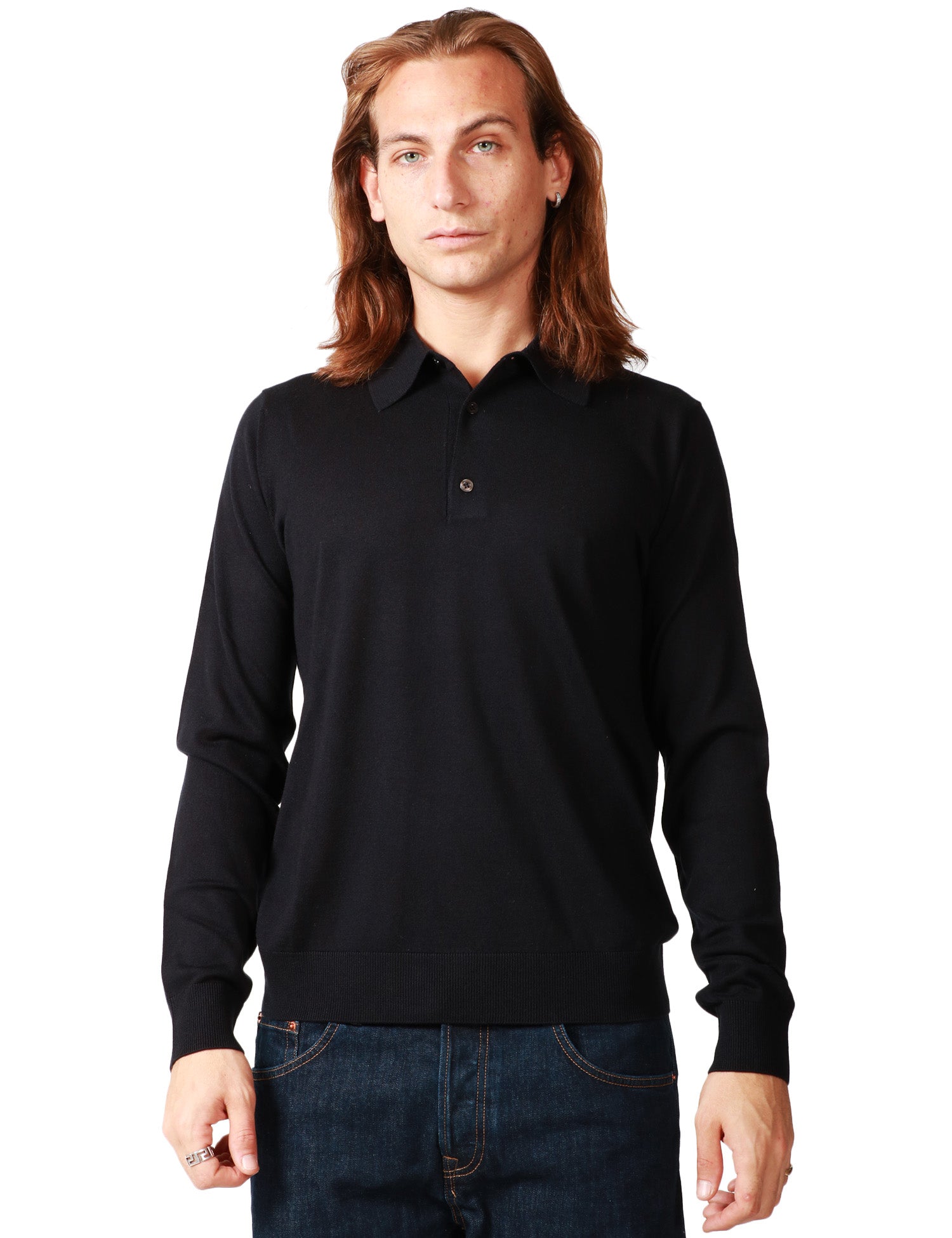 Maglia polo uomo ALPHA STUDIO a manica lunga. Colletto con 3 bottoni. Polsi e fondi lavorati a coste. Slim fit. Composizione: 85% lana, 15% seta.Stile: