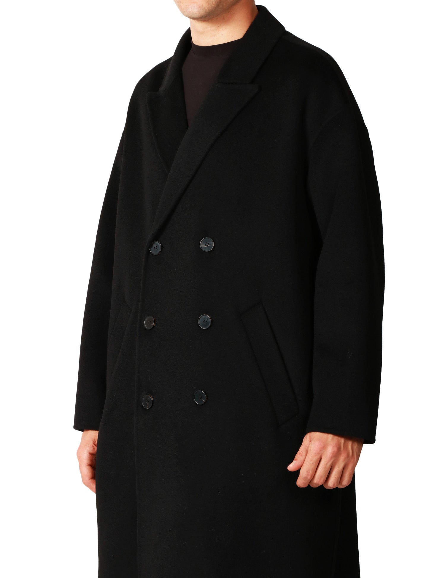 Cappotto uomo AMARANTO nero doppiopetto con sei bottoni in tono. Collo rever a lancia. Tasche laterali. Lunghezza sotto al ginocchio. Vestibilità leggermente over.Stile: