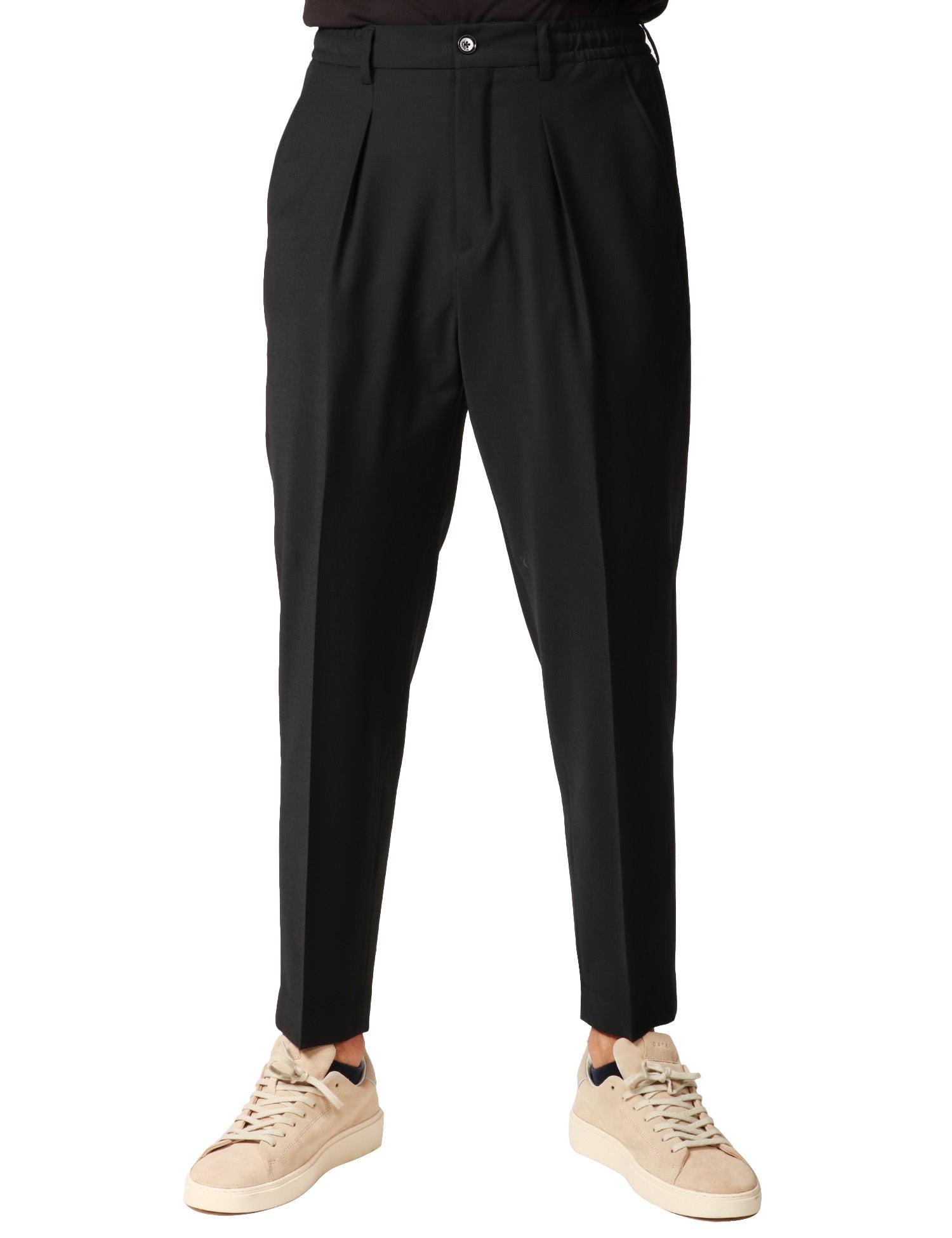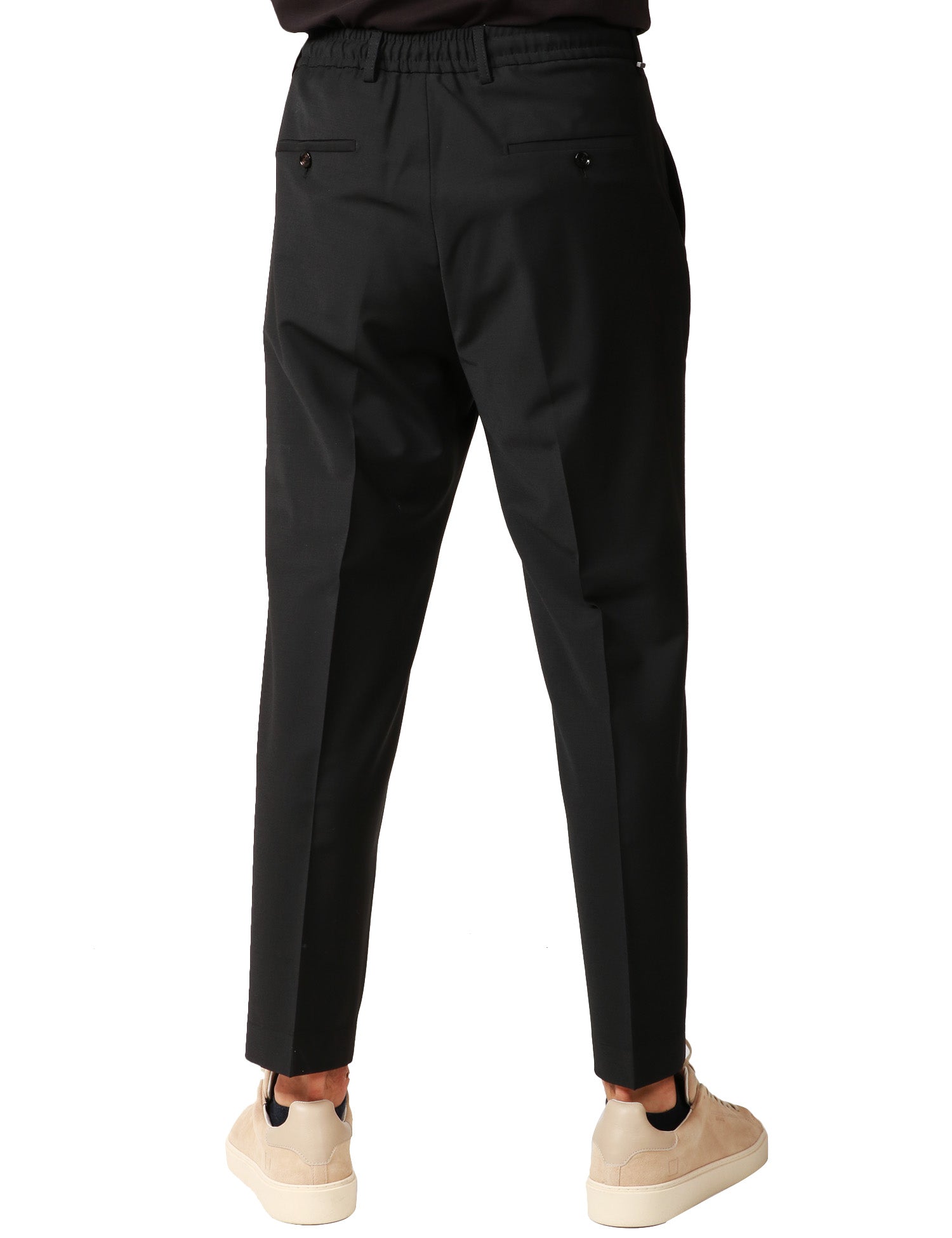Pantalone uomo BEABLE Dominique nero a gamba dritta. Tasca america, e tasche posteriori a filetto con bottone. Pence singola davanti. Elastico sulla parte posteriore della vita.Stile: