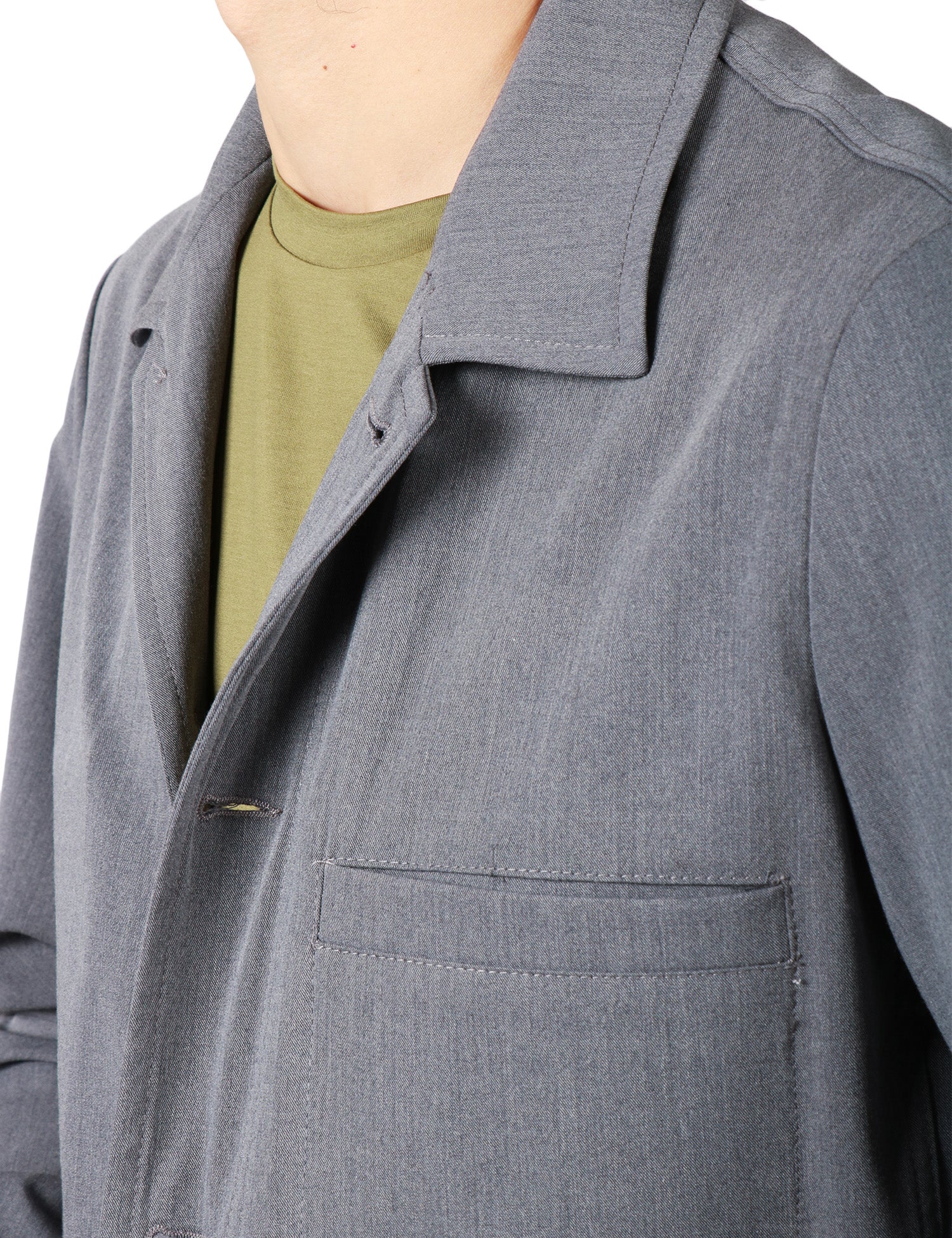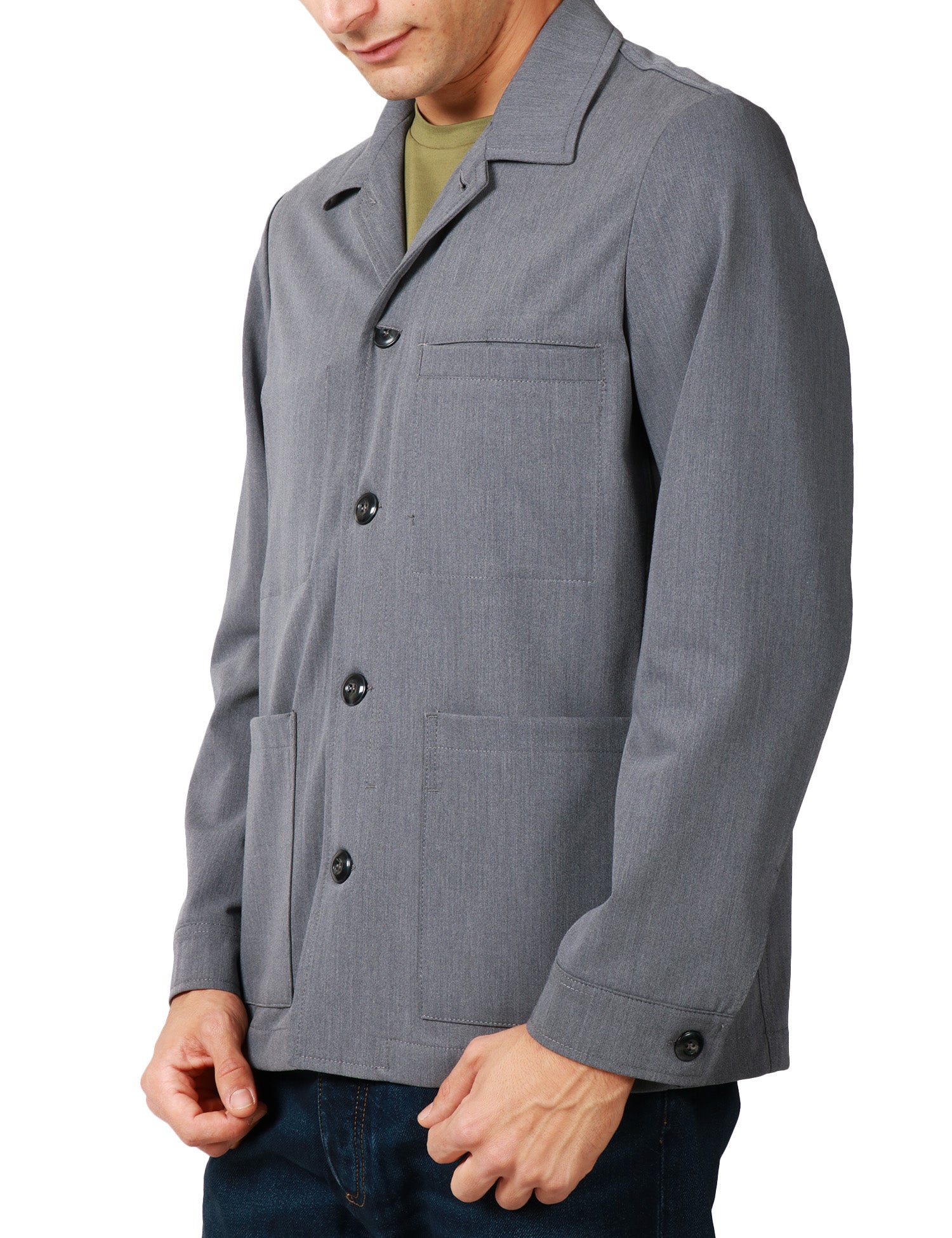 Giacca camicia OFFICINA 36 Dana grigia con bottoni in tono. Colletto rever. Tre tasche a toppa davanti e taschino interno. Composizione: 62%Poliestere 27%Viscosa 7%lana 4%Elastane.Stile: