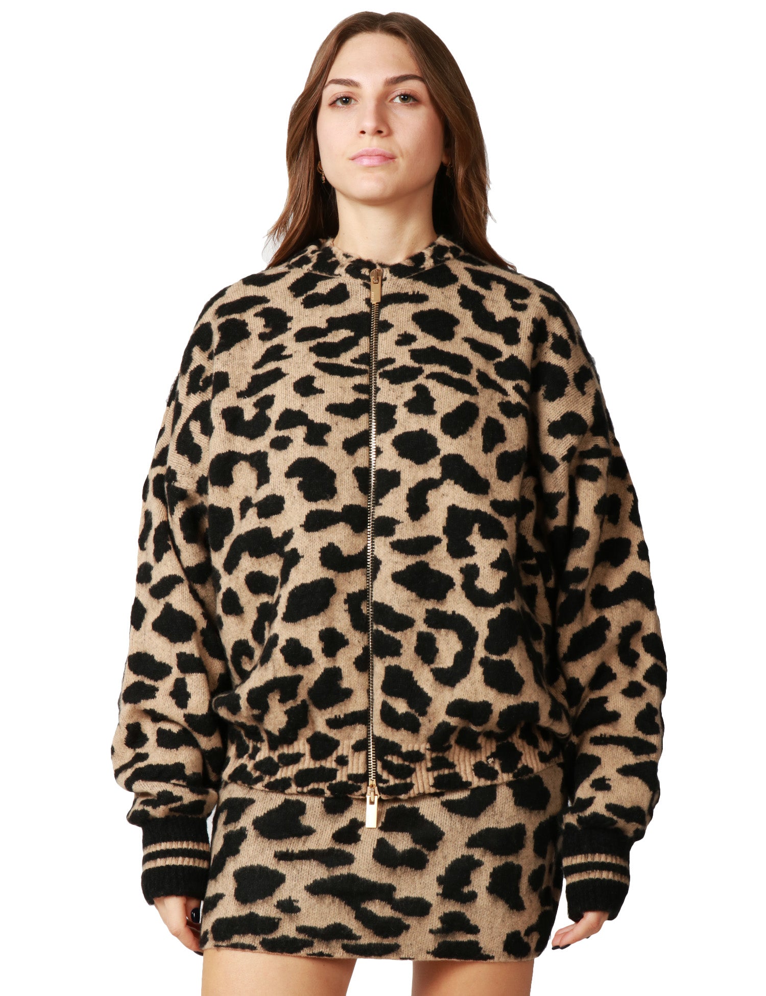 BOMBER DONNA AKEP MACULATO OVER IN MISTO LANA CON ZIP CENTRALE