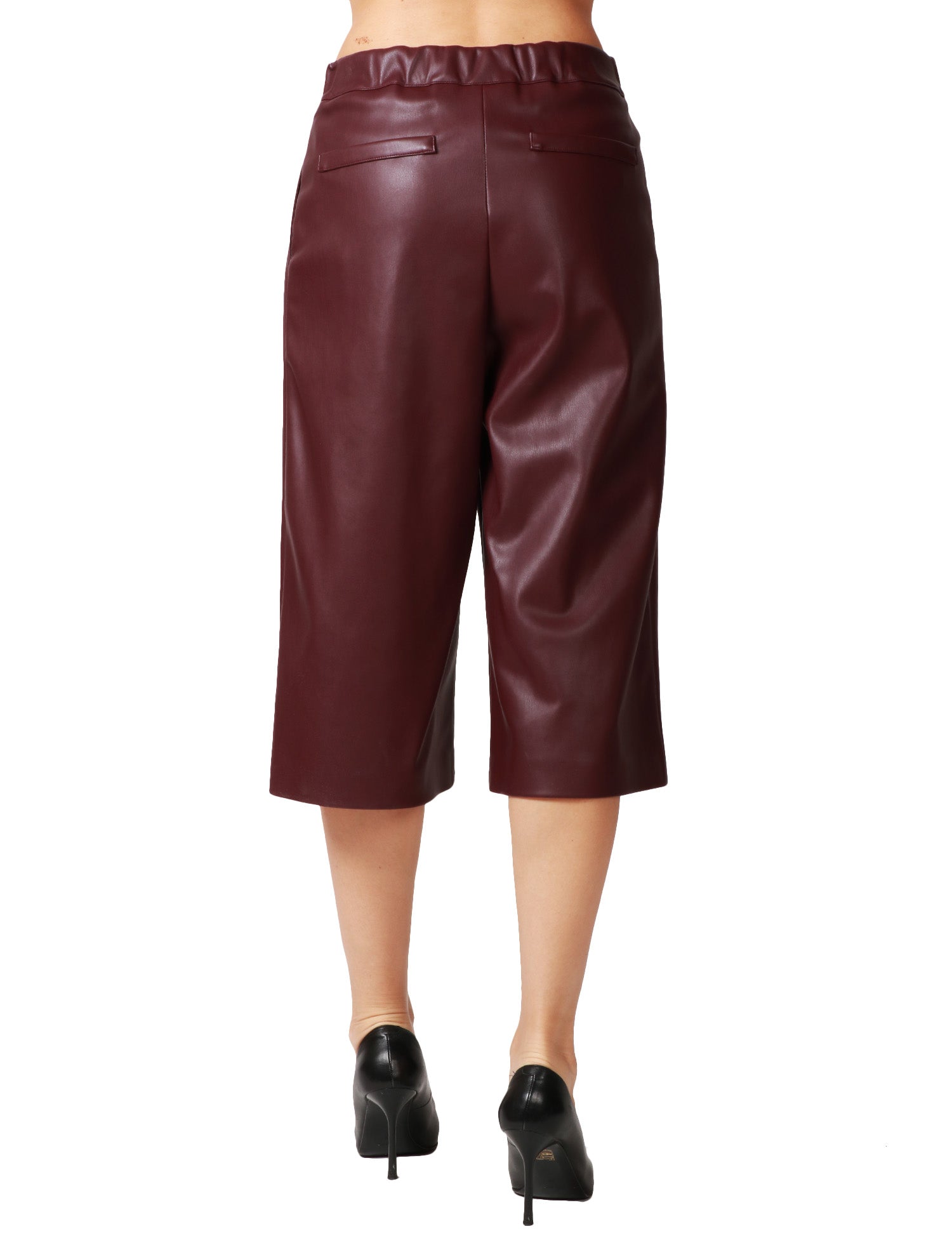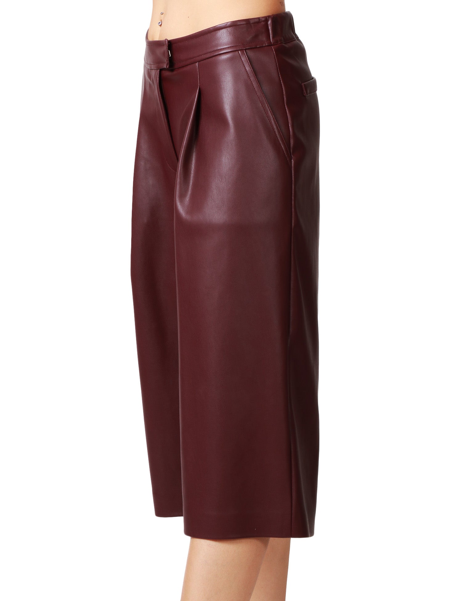 Bermuda ALPHA STUDIO ciliegia in ecopelle a vita alta con pences davanti ed elastico arricciato sul retro.COMPOSIZIONE: 50% POLIESTERE 50% POLIURETANICA.