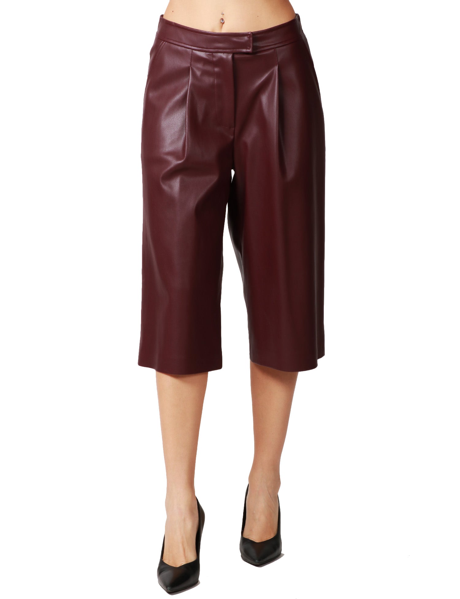 BERMUDA DONNA ALPHA STUDIO CILIEGIA IN ECOPELLE A VITA ALTA CON PENCES DAVANTI