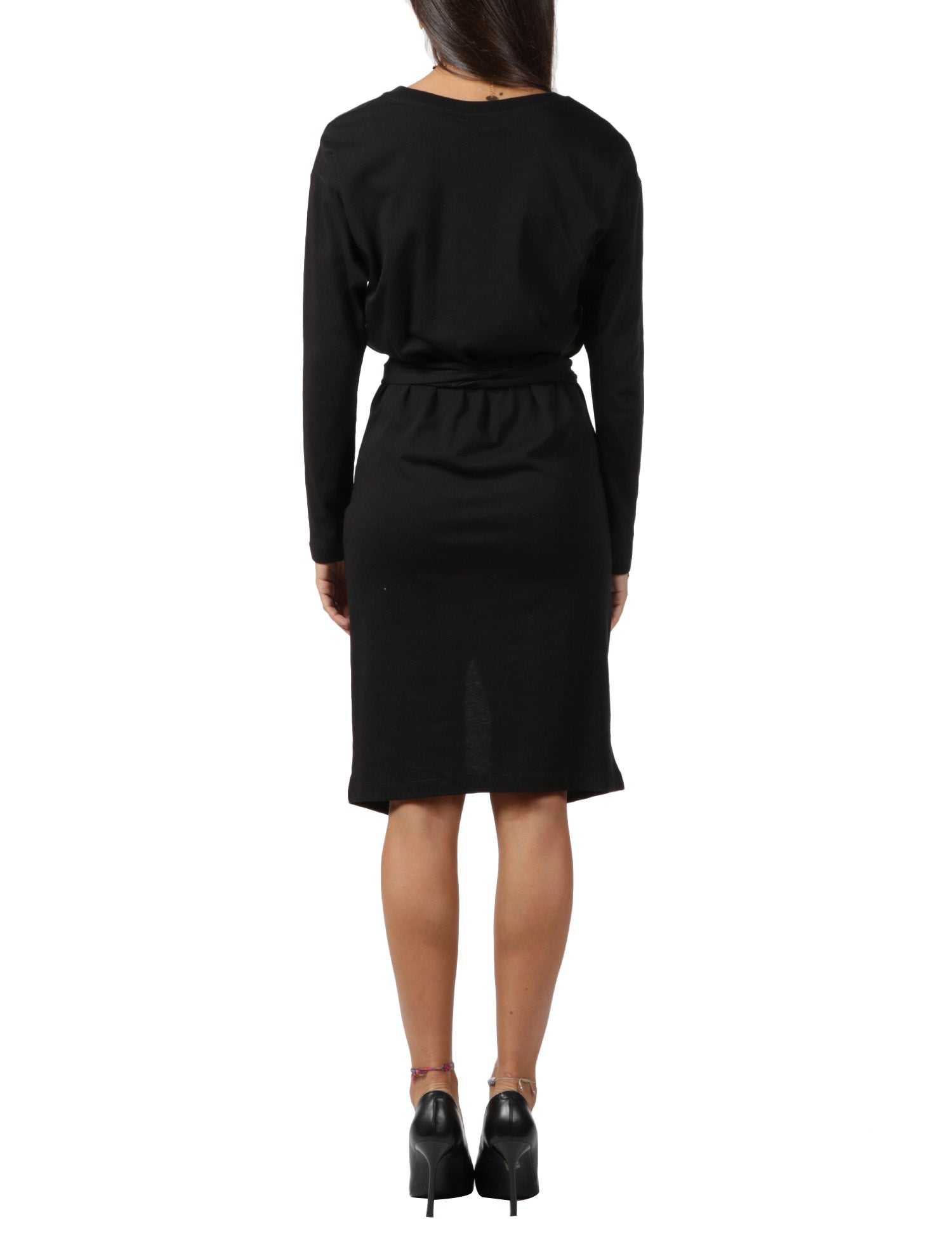 Abito con fascia in vita e ricamo frontale a contrastoDettagli: