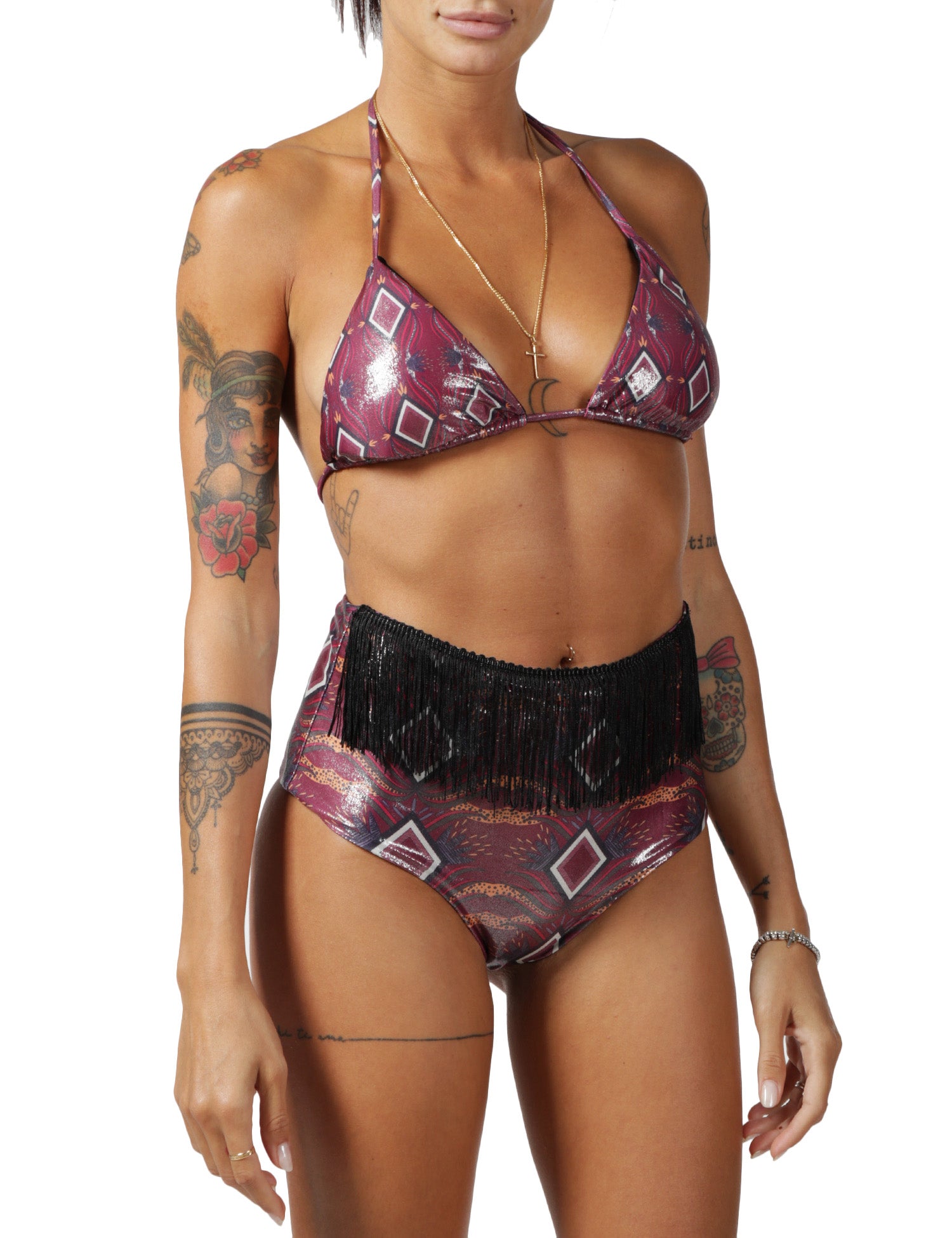 Modello RevancheTriangolo Con Slip Vita Alta In Microfibra Stampata Metal Finish