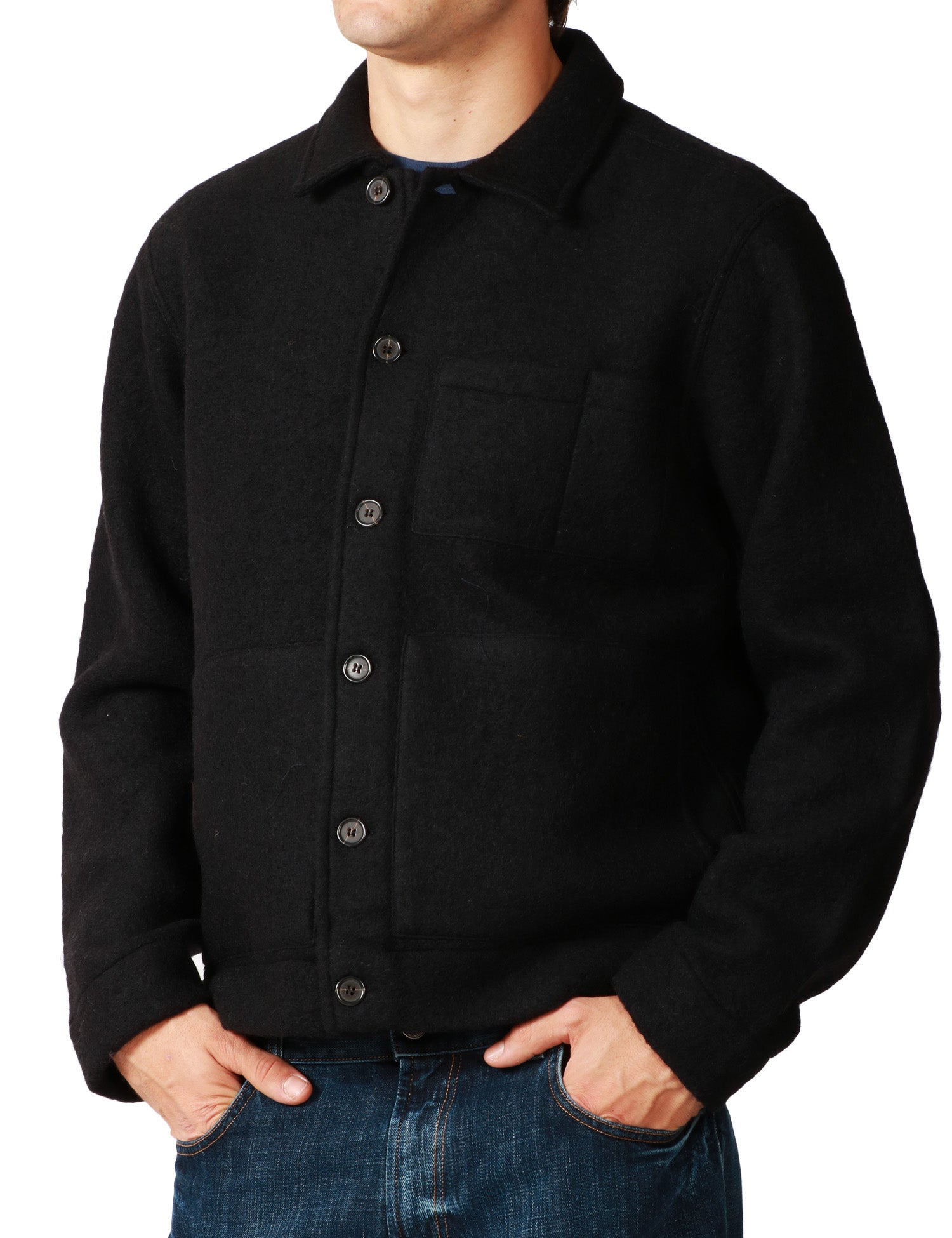 GIACCA UOMO UNIVERSAL WORKS NERA IN LANA CON COLLETTO E BOTTONI